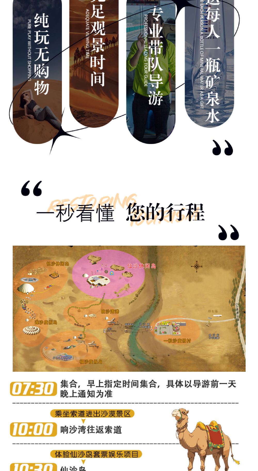 响沙湾一日【含门索+仙沙岛+骑骆驼 纯玩5小时以上 】【【纯玩0购】全心全意为沙漠而生 【赠送蒙古礼遇】(文创礼物+哈达+蒙古大钞)】