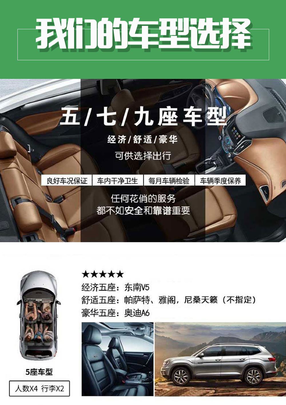 5、节假日期间 5座7座9座15座车上浮100-400元不等,由于资源紧张不支持退改,具体咨询客服
