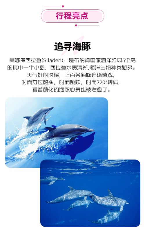 印尼美娜多一日游西拉登追海豚神秘沙洲海钓浮潜深潜水【西拉登追逐野生海豚,心灵治愈的旅程】