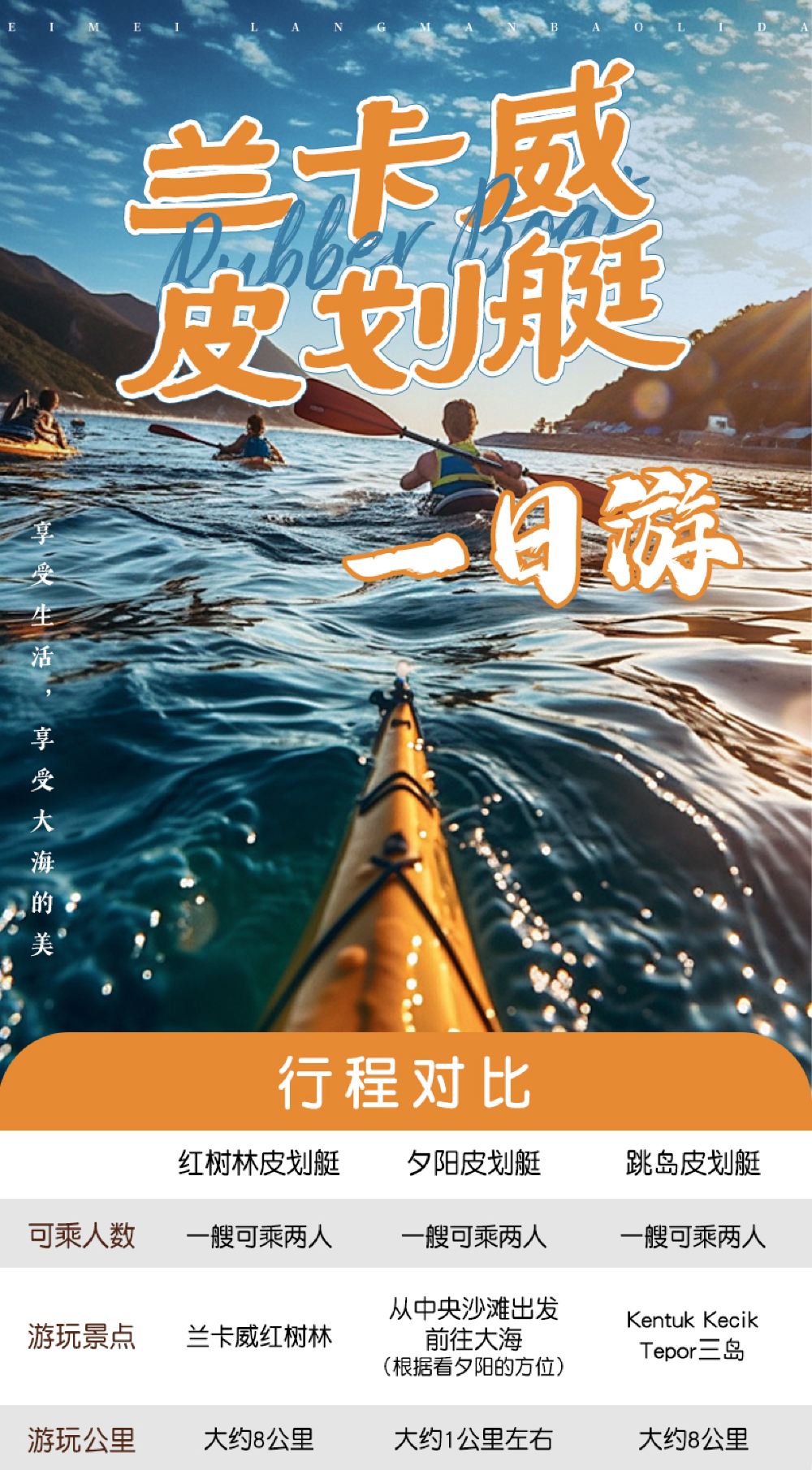 马来西亚兰卡威夕阳巡游皮划艇半日游/橡皮艇/地质公园【与大海尽情接触,2人可坐一艘】