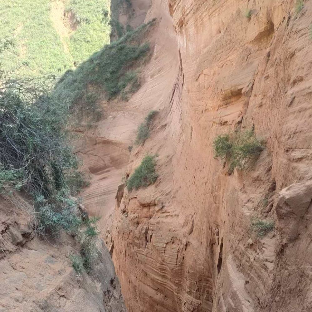 ▲ 榆林波浪谷又称靖边红沙岩峡谷,是一处以丹霞地貌为主的自然景观 。 主要景观:有火焰丹霞、赤壁丹霞、地心丹霞等景点。火焰丹霞色泽鲜艳,远看如火焰燃烧;赤壁丹霞峡谷北侧是百米红岩绝壁,南侧为黄土高原地貌;地心丹霞峡谷纵横,水蚀出“时空峡谷”“千米画廊”等景观。