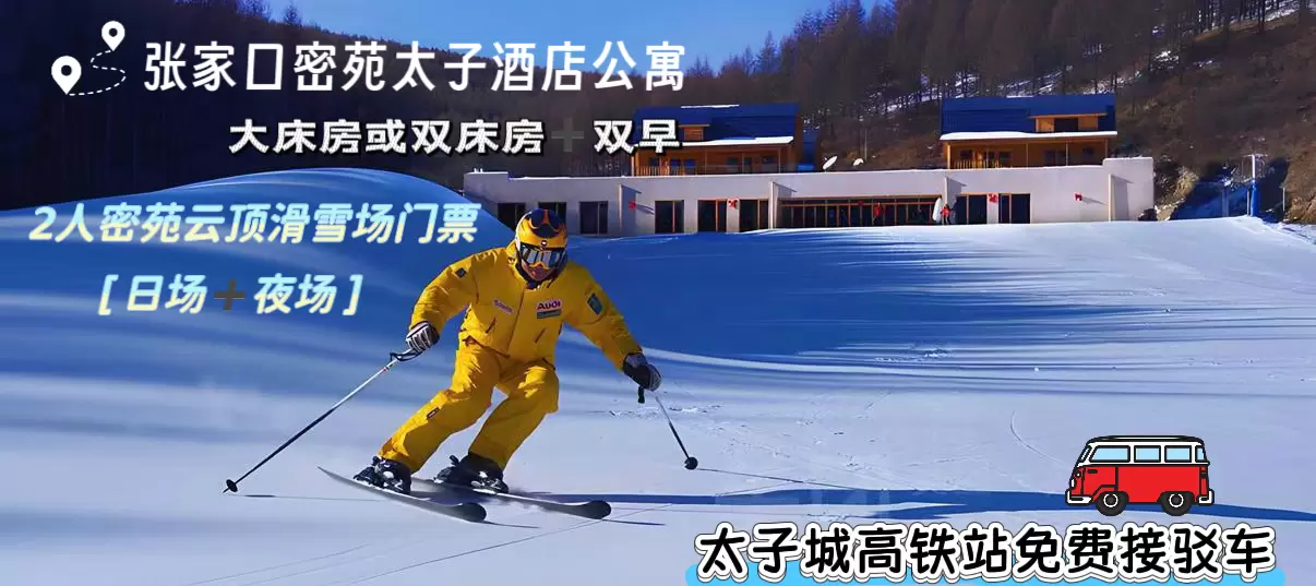 张家口云顶大酒店1晚+密苑云顶滑雪票2张+日+夜场票+双早+太子城高铁站往返接驳车