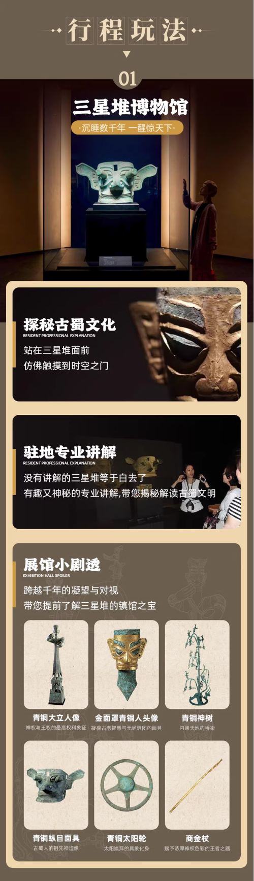 约13:30:三星堆博物馆人工深度精讲约3小时, PS:市场90%三星堆大团讲解25-35人,人挤人不说,讲解声音根本听不清,1.5-2 小时匆匆逛完,还要额外收取耳麦费,我们三星堆讲解团严格控制在 20 人内,免费提供耳麦