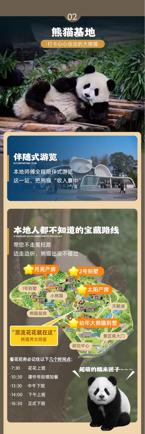 约09:30:大熊猫繁育基地游玩时间约3小时,成都土著司导全程陪伴进园,带您如何不迷路不绕路
