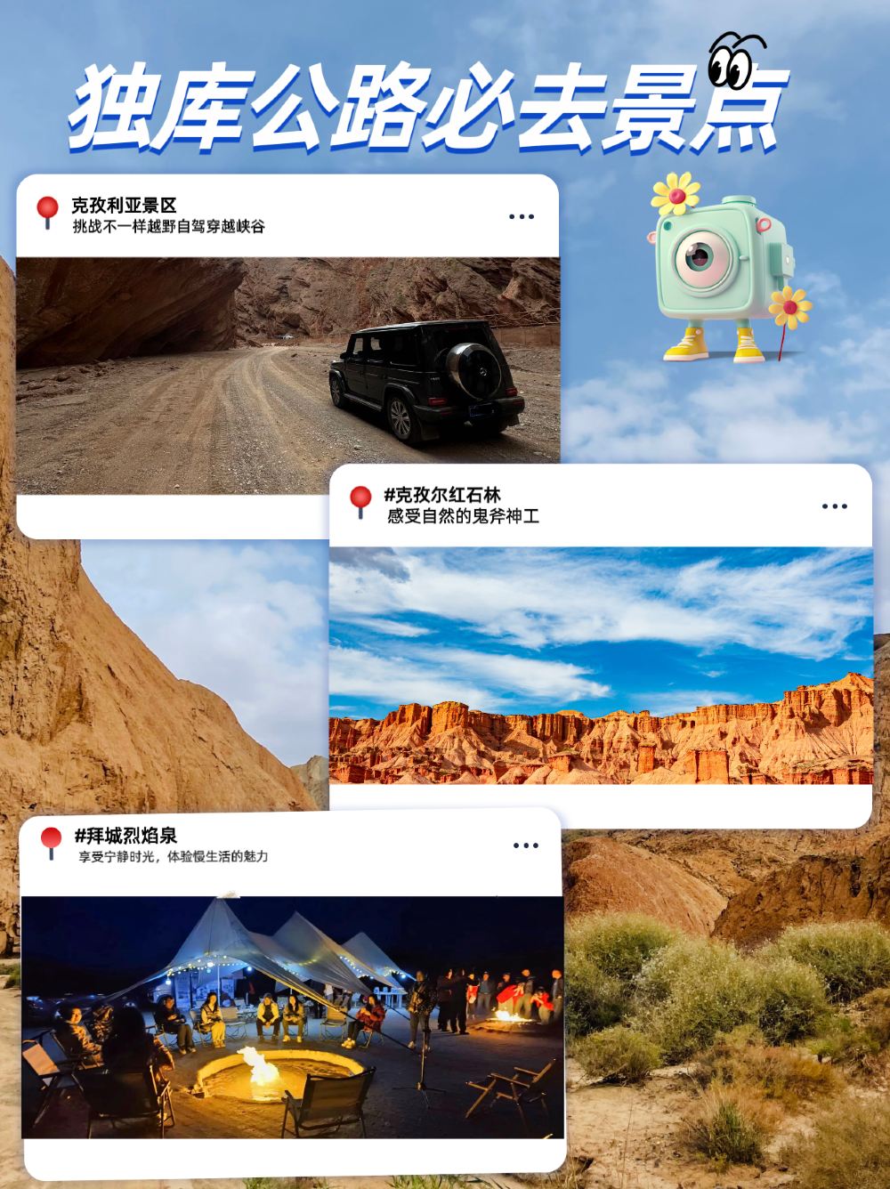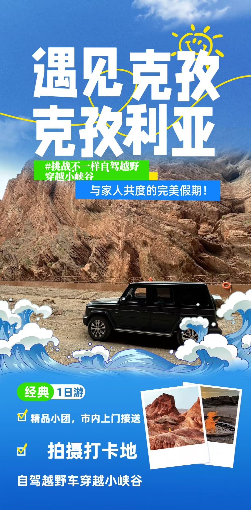 克孜利亚胜景+独库公路纪念碑+拜城烈焰泉+克孜尔红石林一日游【[精品小团]2人即发!越野车团!天天发团!轻松出行!】