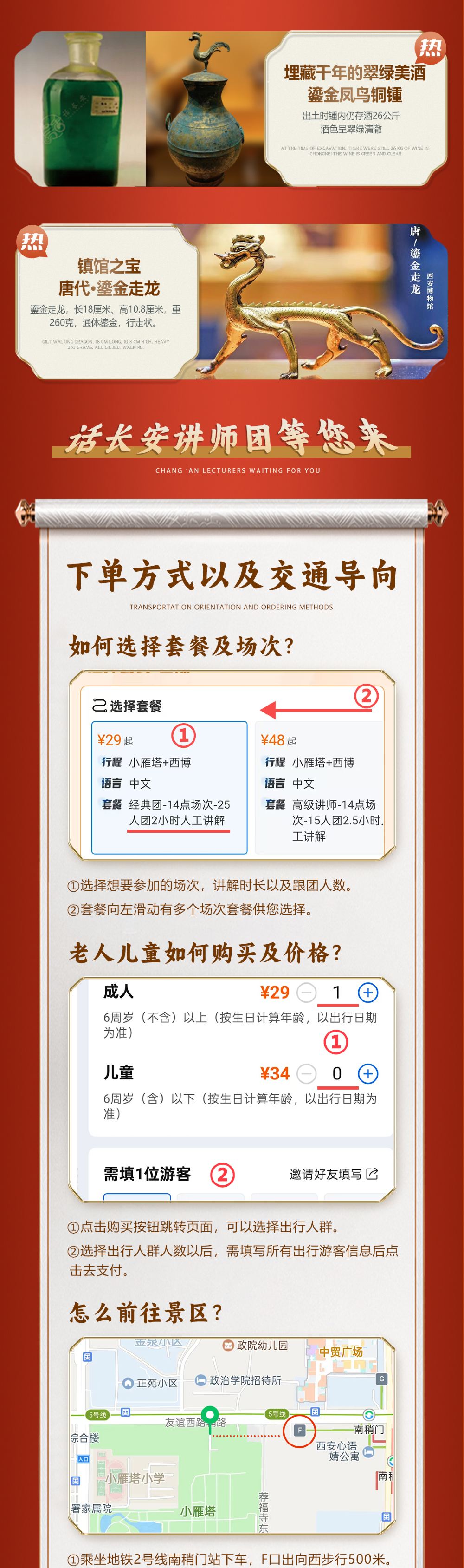 2、西安博物院门票同一证件只能约一次并且限制入园时间,如您购买的场次和自行预约的门票时间不符,导致当天无法入园,产品也是无法退改的。