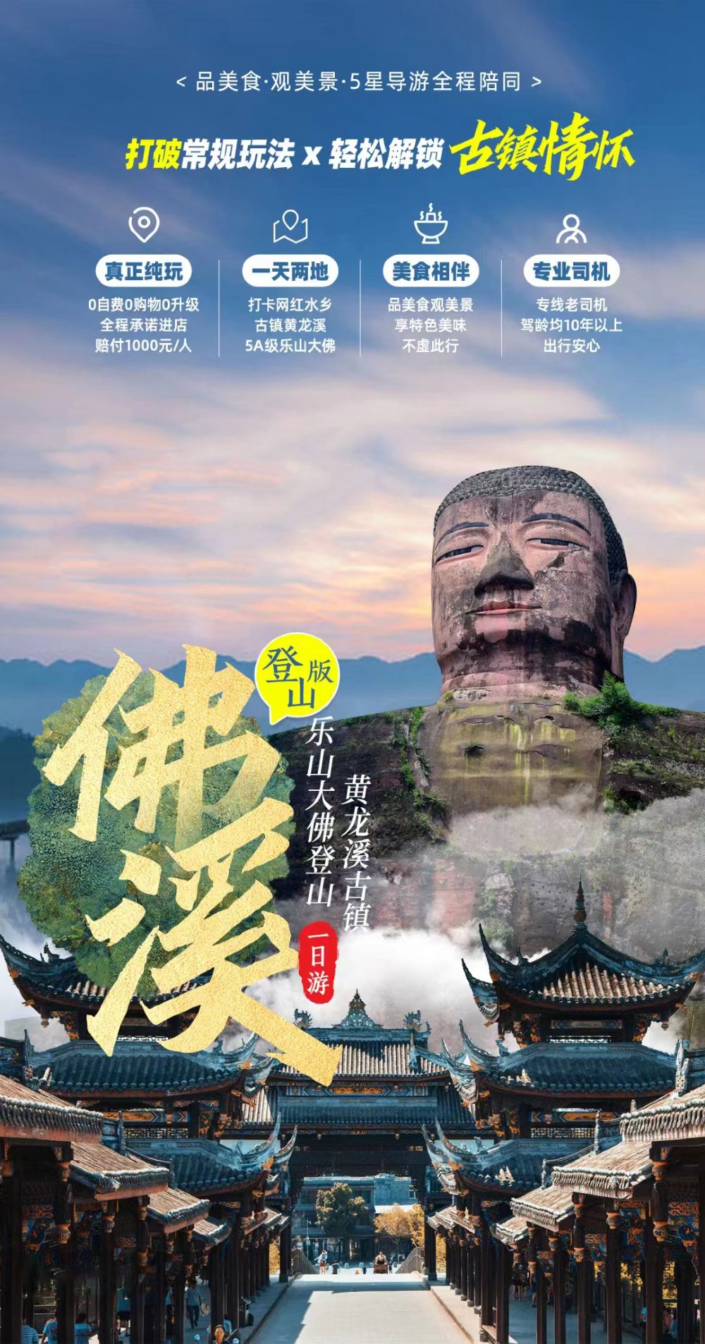 乐山登山+黄龙溪古镇一日游【[热门景点]一天玩转两大经典景区】