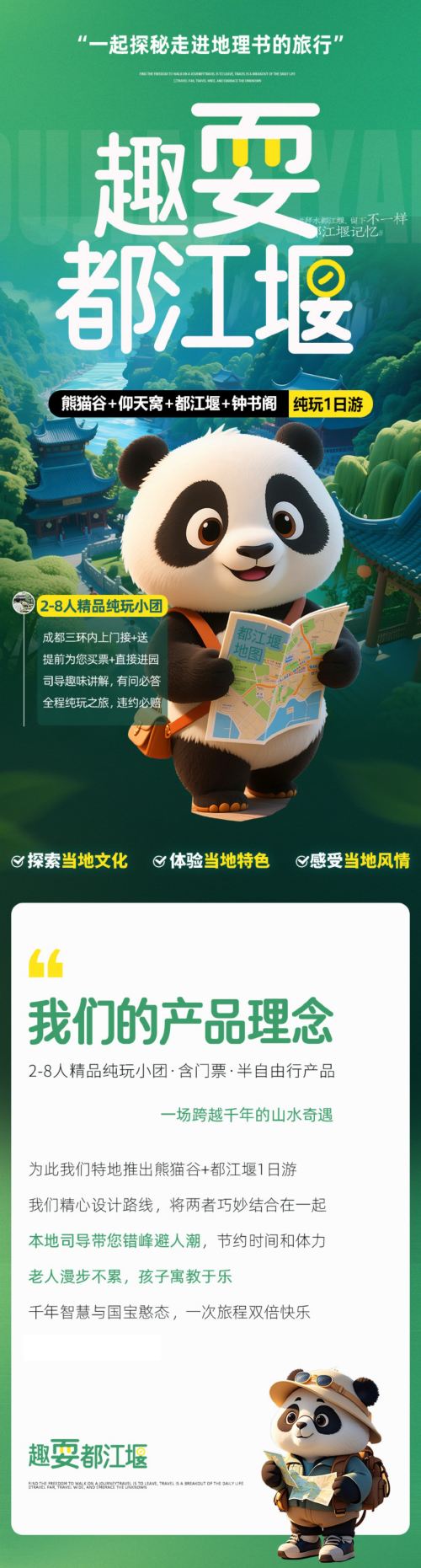 2-8人精讲小团熊猫谷+钟书阁+仰天窝+都江堰+蓝眼泪一日游·门票全含+都江堰景区讲解