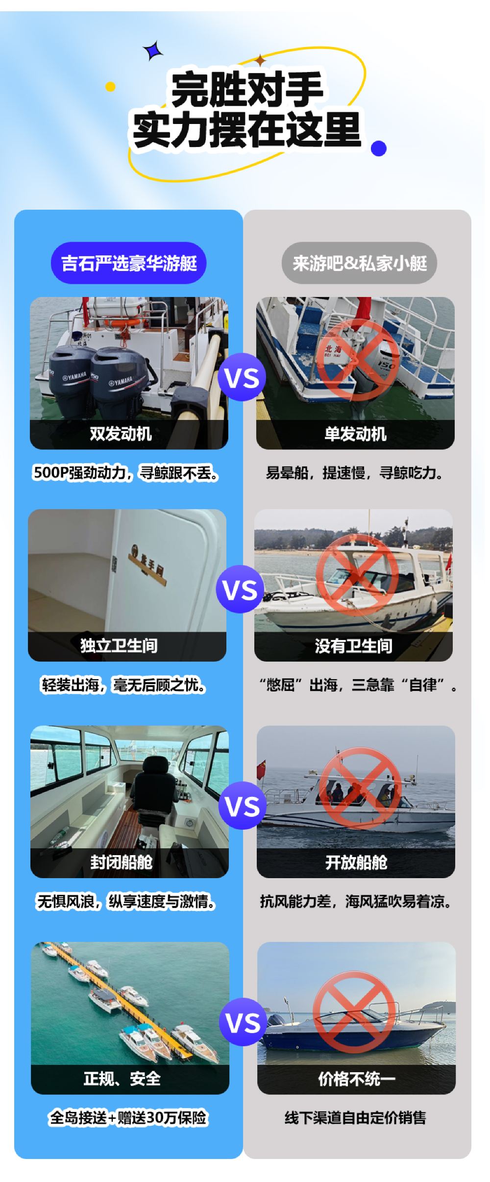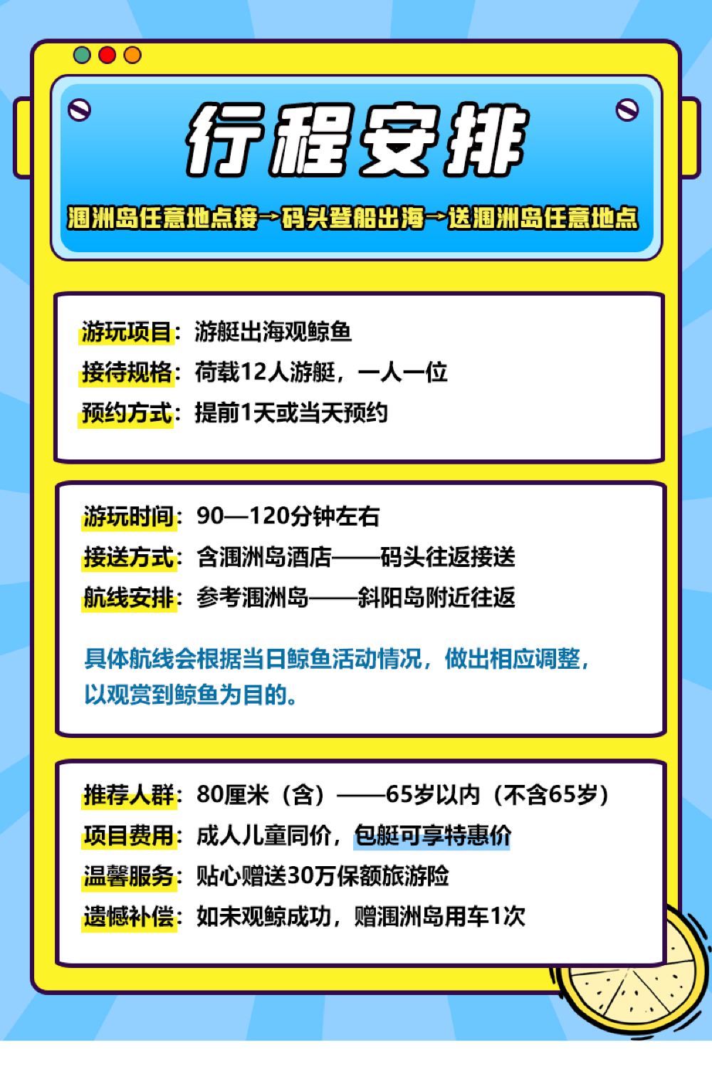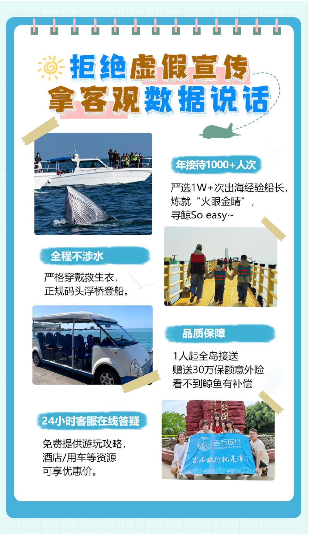 北海涠洲岛半日游【游艇出海观鲸布氏鲸追鲸鱼含接送+海上落日】【1人起全岛接送】
