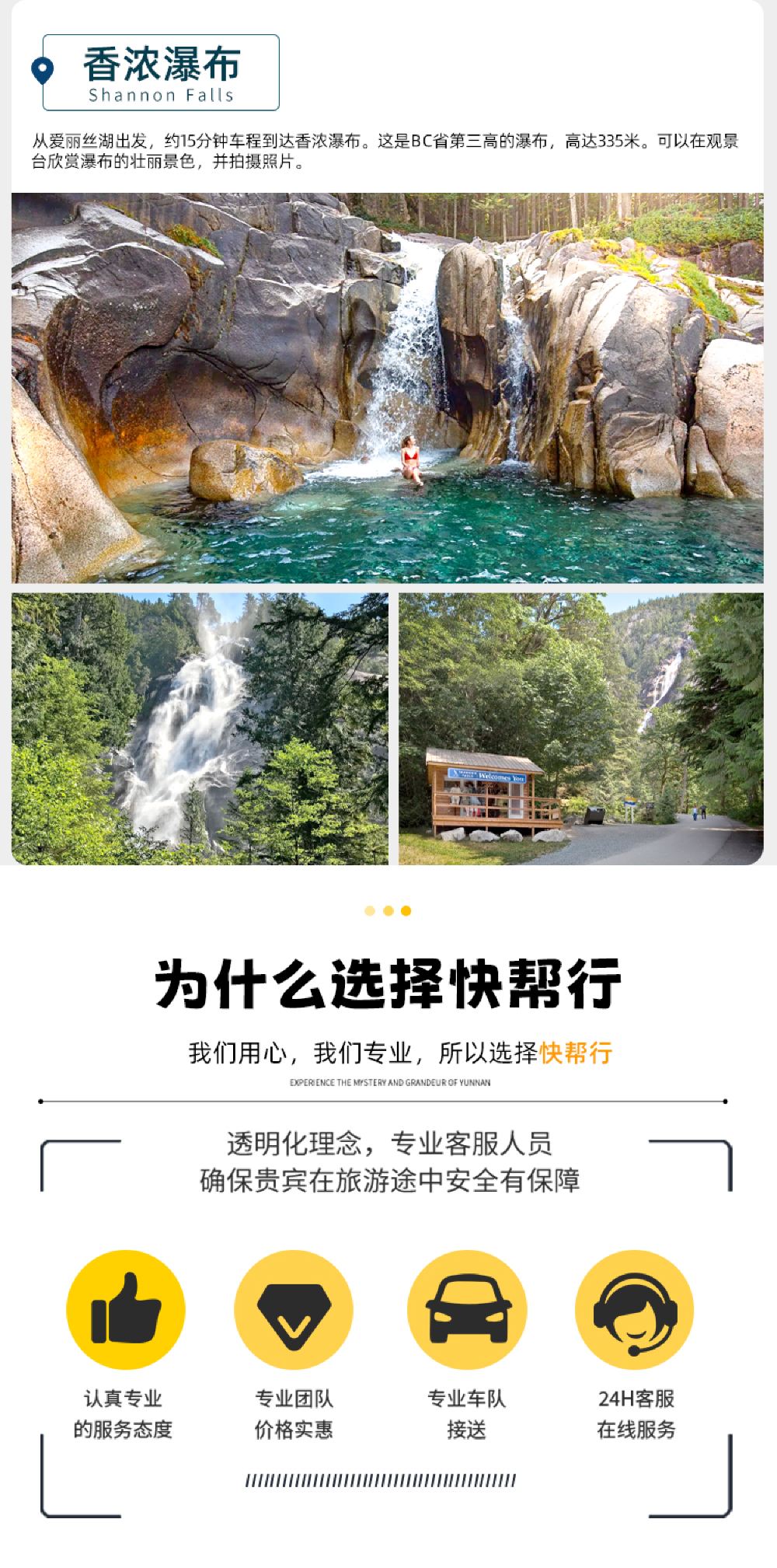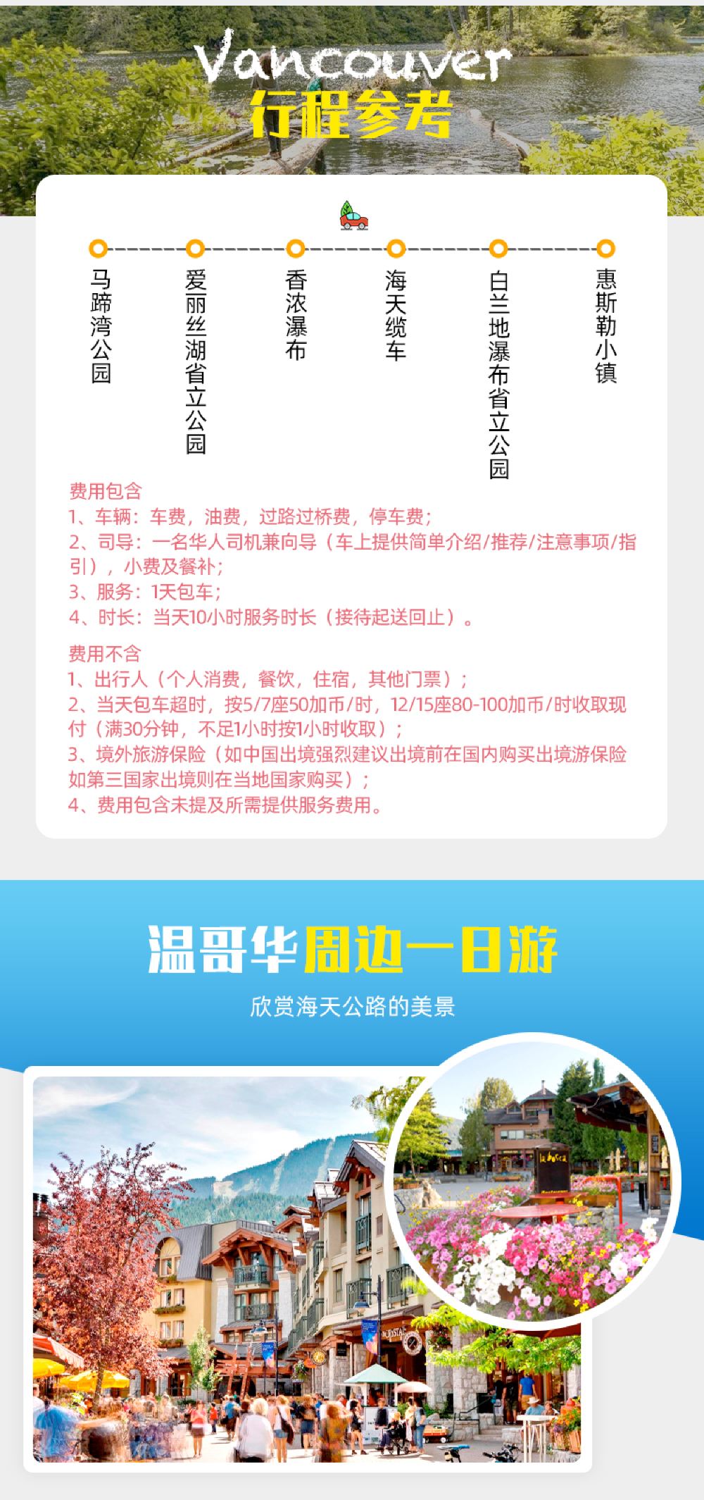 1.超时费:5座7座车50加币/小时,12-15座车80加币/小时,现付司导