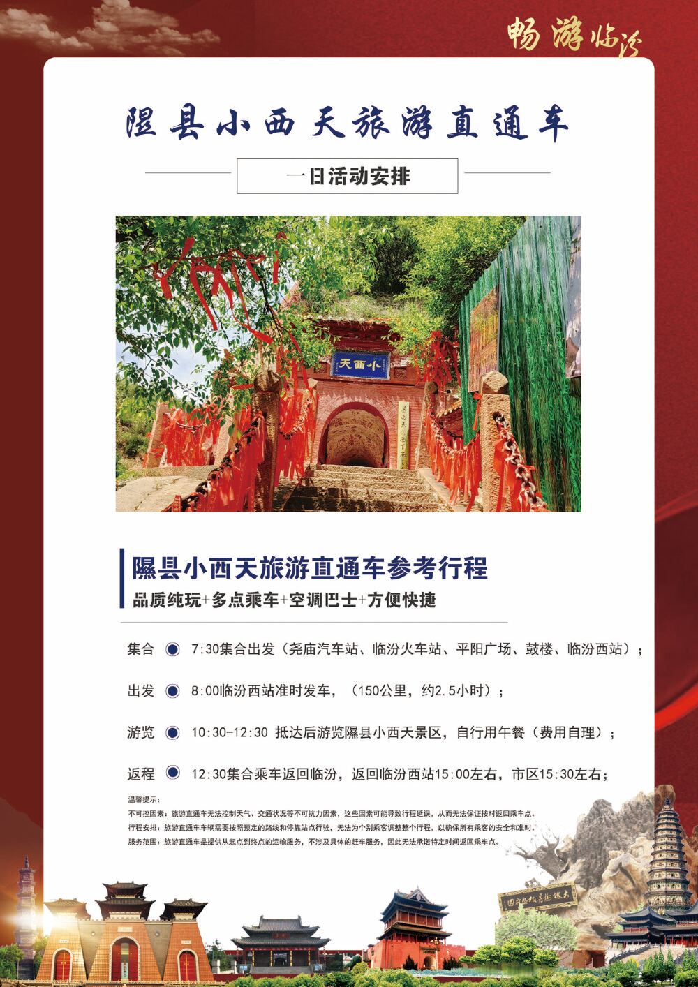 小西天旅游直通车【15人小团 | 国庆节活动】【【多点乘车】7:30尧庙、7:40鼓楼、7:50平阳广场、7:55火车站、8:10临汾西站美居酒店】