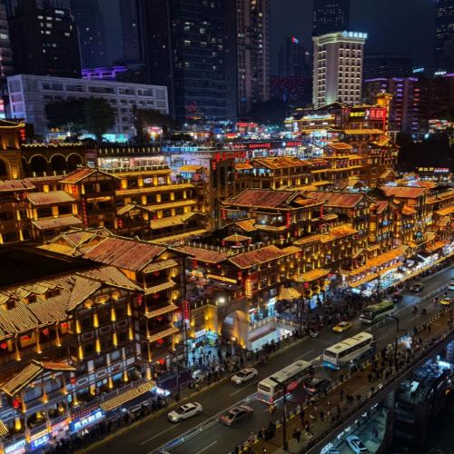 ▲ 洪崖洞:其以吊脚楼风貌为主体,依山就势、沿江而建,展现了老重庆原始风貌,被建筑业界称为 “中华悬崖城”。洪崖洞分为 11 层,有洪崖滴翠、洪崖汉阕、吊脚楼、辛亥丰碑等景观,夜晚灯光亮起时,宛如现实版的 “千与千寻” 场景。