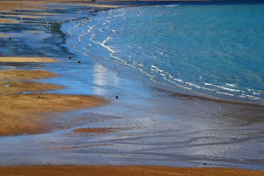 ▲ 高罗拥有宽阔平缓的沙滩,沙质洁净,海水清澈湛蓝,是极难得的天然海滨浴场。海边溅起了洁白晶莹的水花, 轻轻地抚摩着细软的沙滩,又恋恋不舍地退回,在沙滩下划出一条条的银边,像是给浩浩荡荡的大海镶上了闪 闪发光的银框,静谧而安详看着海水带走沙的时候,也悄悄带走了时间。也可以在沙滩上开展排球、足球、放 风筝活动;亦或是乘上快艇纵横驰骋在那广阔的海洋、上岛探索天然形成的海蚀地貌,在海蚀穴中穿梭、在海 蚀崖上跳跃、在海蚀拱桥上行走。也可以在海边垂钓、拾取沙滩上的贝类,体验赶海带来未知丰收的喜悦