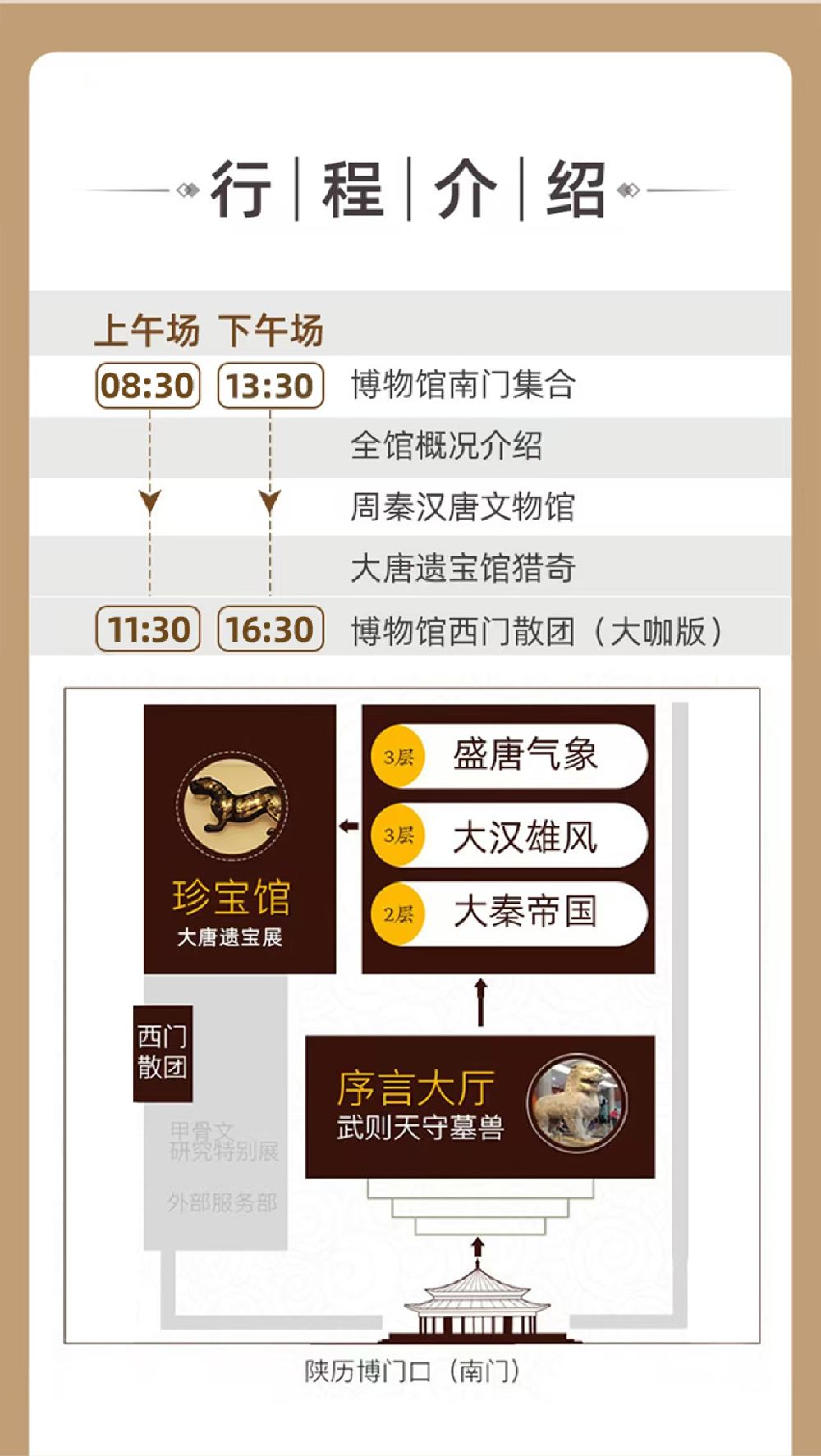 ①.本产品不含票!!! 请自行预约【陕西历史博物馆-本馆】门票提前5天17点放票,请前往官方公众号预约