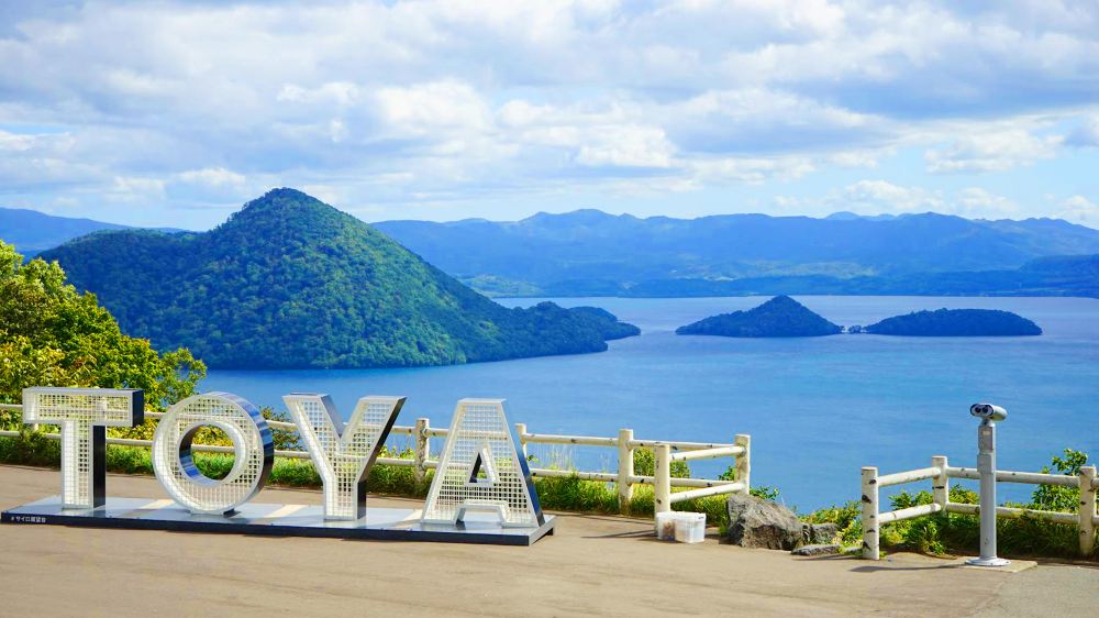 ▲ 洞爷湖展望台, 登临打卡观景点,俯瞰日本北端不冻湖的奇迹——冬季依旧荡漾的湛蓝湖面,如巨幅琉璃镶嵌在群山间。远处"虾夷富士"羊蹄山雪冠闪耀,与持续生长的昭和新山(白烟袅袅的活火山)遥相呼应,湖光倒映双峰,构成天地方圆的大美之境