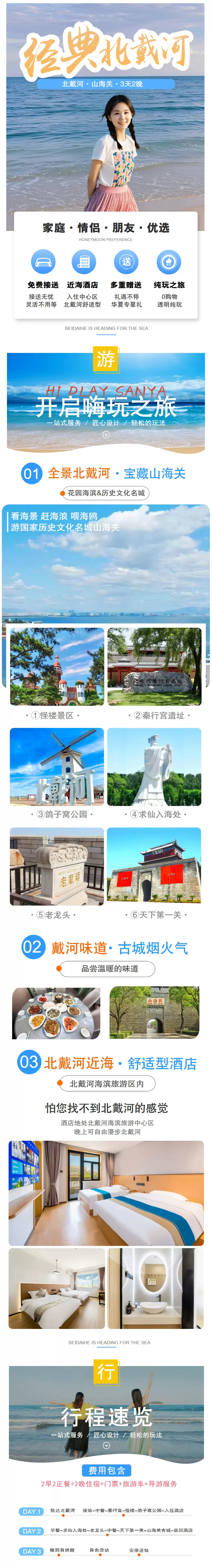秦皇岛北戴河+山海关三日游【文化经典&鸽子窝*天下第一关*老龙头*求仙入海处&近海酒店◆免费接送站◆经典3日】
