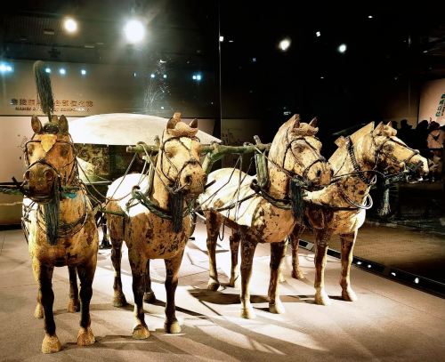 ▲ 介绍 秦始皇兵马俑博物馆又称兵马俑、秦兵马俑。它是秦始皇陵的陪葬坑,与秦始皇帝陵一同组成了:秦始皇帝陵博物院。 秦始皇兵马俑素有世界第八大奇迹之称。这里出土的一千多个士兵陶俑,形象各不相同,神态生动,是中国古代雕塑艺术史上的一颗璀璨明珠,被誉为“二十世纪考古史上的伟大发现之一”。 历史背景 秦始皇从13岁即位时就开始营建陵园,前后将近使用了72万人力,修筑时间长达38年,工程浩大。直至秦始皇去世陵园都未修建完成,由秦二世胡亥继续修建1年多才完成。 传闻中,秦始皇耗费无数人力物力财力,