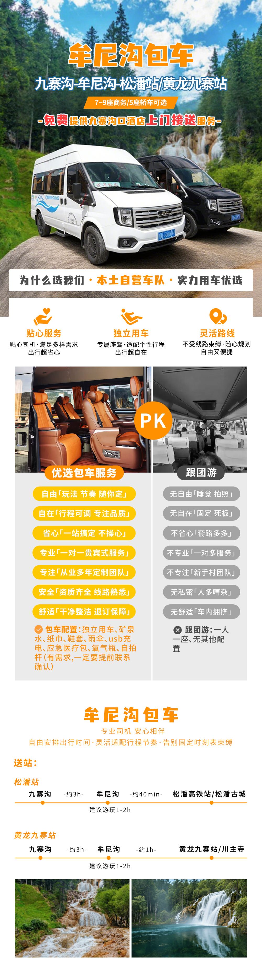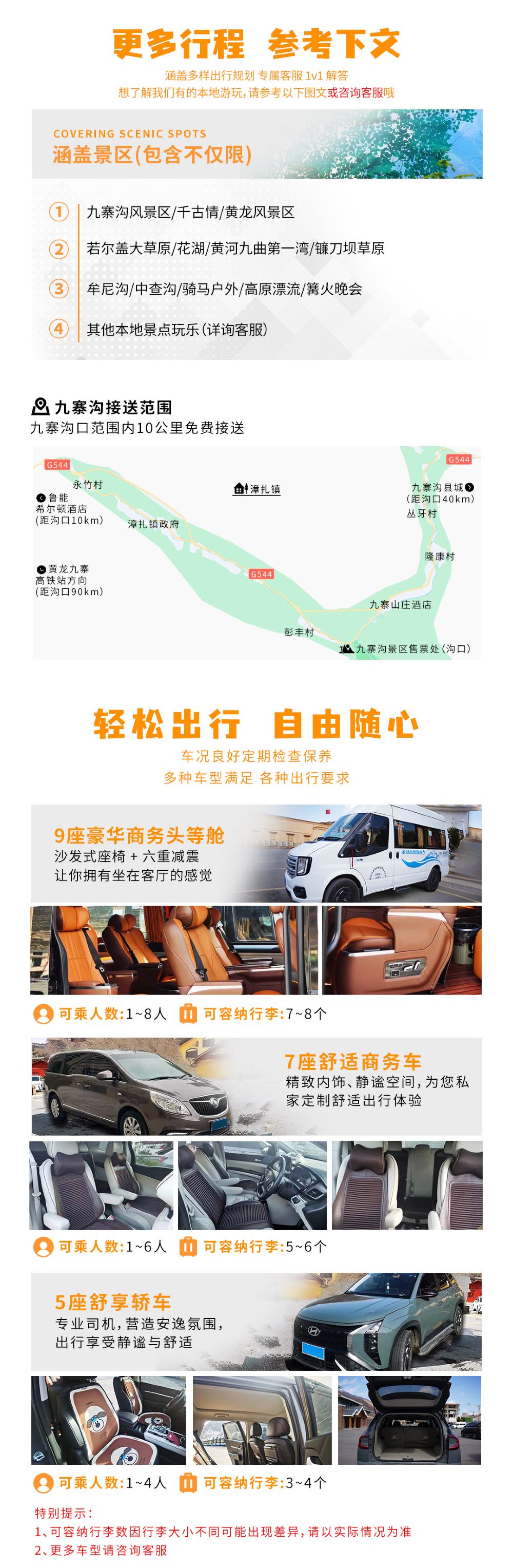 包车游 「九寨-牟尼沟-高铁站」【商务车轿车 任意发车时间】【免费提供九寨沟口附近酒店接送|包车更方便|更私密】