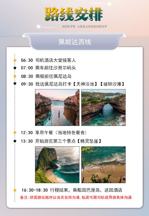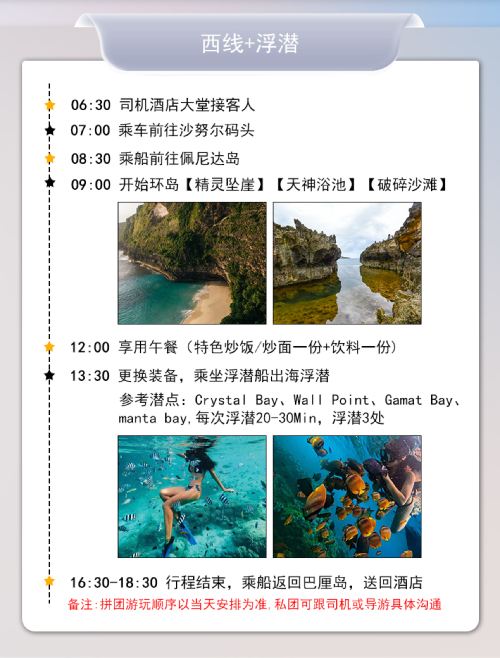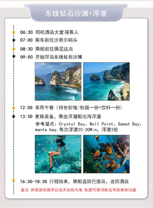 巴厘岛佩妮达岛一日游【可选中文导游/英文拼/私团/下午浮潜】【[只做优质小拼团/私团]司导会协助行程并帮忙拍照,适当给情绪价值~回程不用等别团一起哈,早结束早返程】