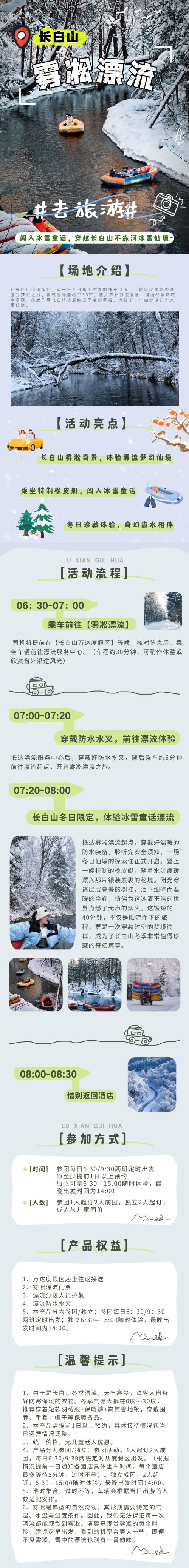 4、由于是长白山冬季漂流,天气寒冷,请客人自备好防寒保暖的衣物。