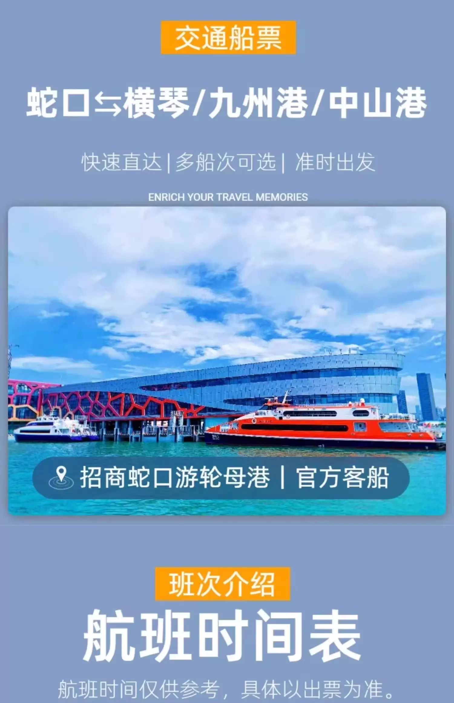 【深圳蛇口码头至珠海横琴客运码头】深圳招商蛇口母港/蛇口码头-珠海横琴码头/靠近长隆/澳门/单程往返船票