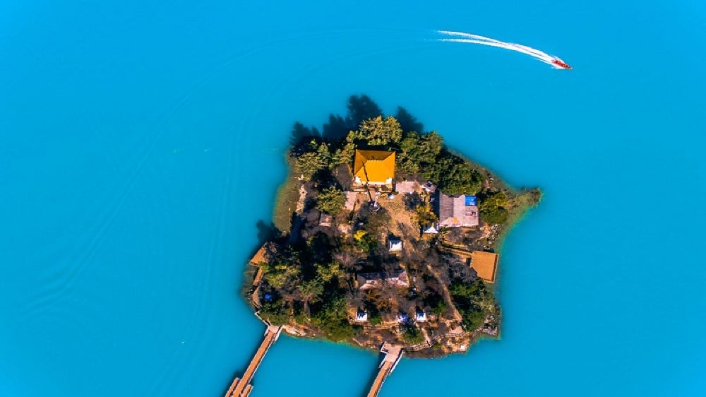 有座小岛,岛上有一座古庙 “错松庙”。客人在此处可自费乘豪华游艇游览湖光山色。
