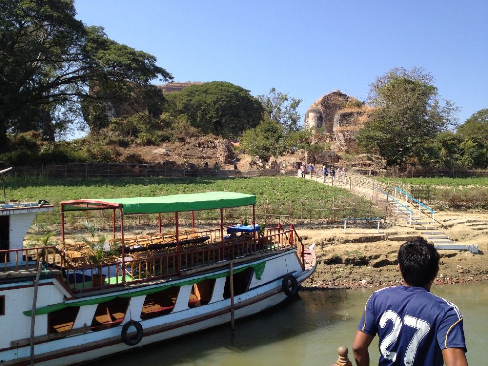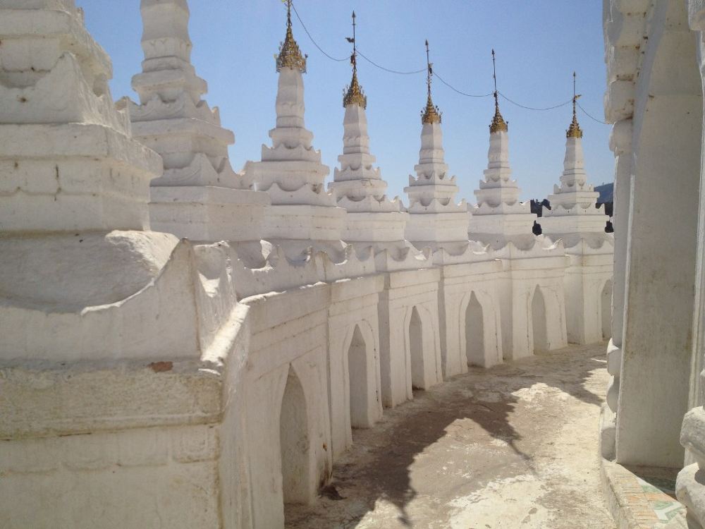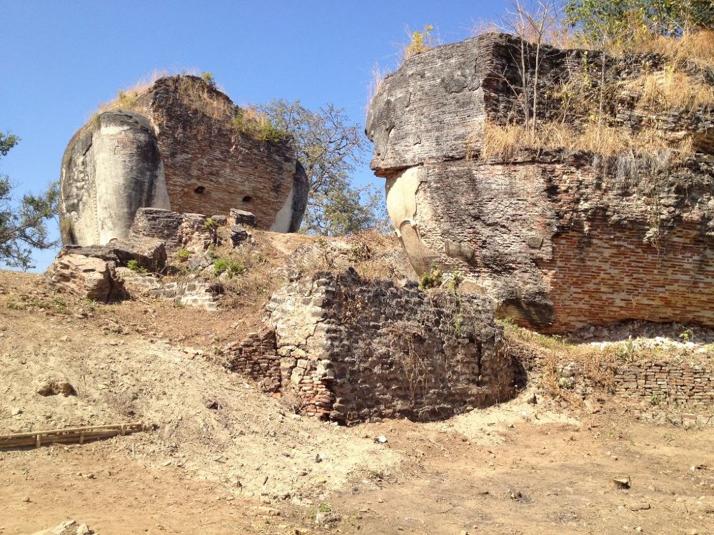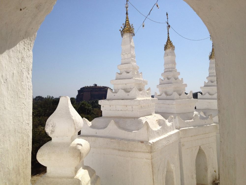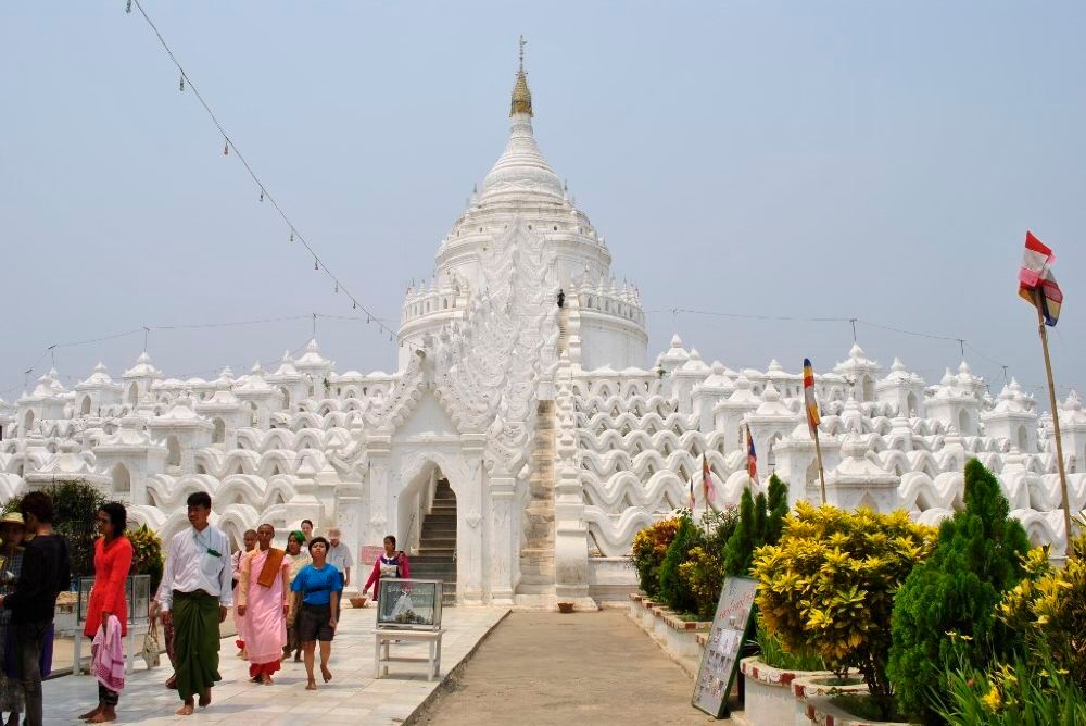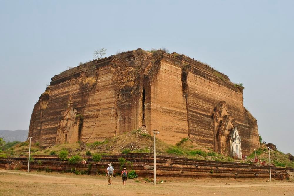 敏贡佛塔位于敏贡古城内,巨大的外形就像一块砖头。始建于1790年左右的佛塔在1819年“伯都帕亚王”去世时停工,仅完成了佛塔的基座。1839年的大地震给塔身造成了不可修复的巨大裂缝。