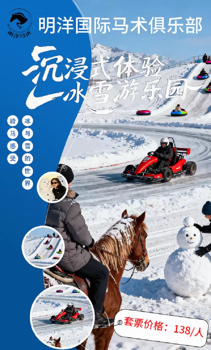 哈尔滨明洋马术俱乐部【户外野骑/马背旅拍/冰雪乐园多种套餐可选】