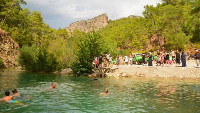 ▲ 在天然河潭清澈见底的水中畅游片刻。