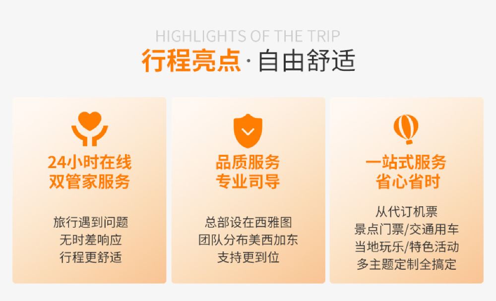 2)司机兼向导:一名华人司机兼向导服务/车(小费,餐补,车上基础介绍/推荐);