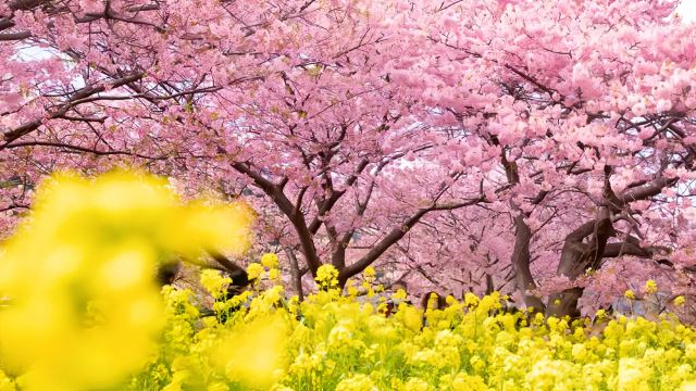 ▲ 【河津樱花祭】 每年2月上旬正值我们春节前后,河津町两岸的河津樱竞相绽放,美不胜收。 盛开时不仅花朵大、花瓣颜色浓重美艳,花期还可长达一个月之久,8000多株河津樱绵延,俨然一片粉红的花海,醉人心脾 每逢樱花季节来临都会举办河津樱花祭,吸引上百万的日本国内外游客前来打卡
