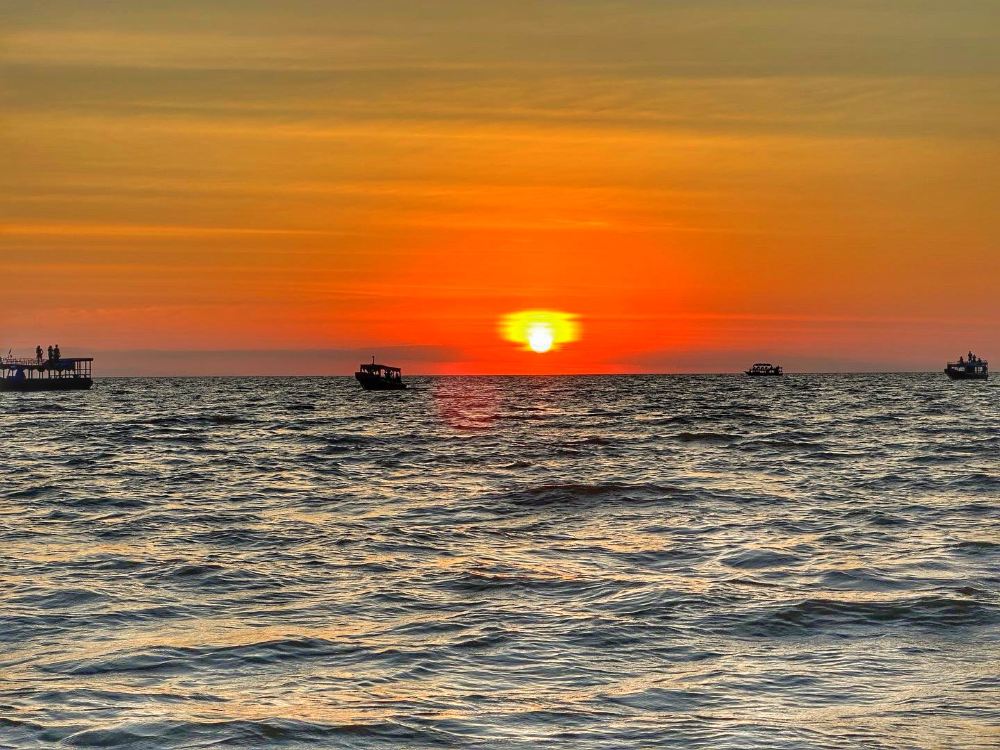 ▲ 在洞里萨湖的船上捕捉日落时刻!