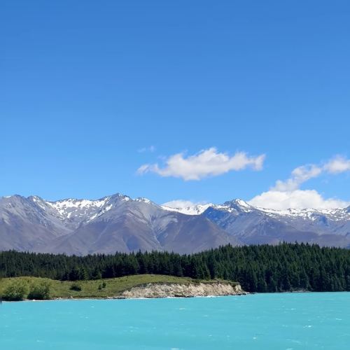 ▲ 普卡基湖(1小时) • 核心体验: 1. 蓝牛奶湖观景台(20分钟):拍摄雪山与湖水同框; 2. 沿湖公路自由停车拍照(40分钟)。 16:30-18:30 返程至皇后镇(车程2小时) • 优化路线: ◦ 走SH8替代SH6,缩短车程30分钟; ◦ 途中可灵活停靠三文鱼农场(自费品尝烟熏三文鱼)。