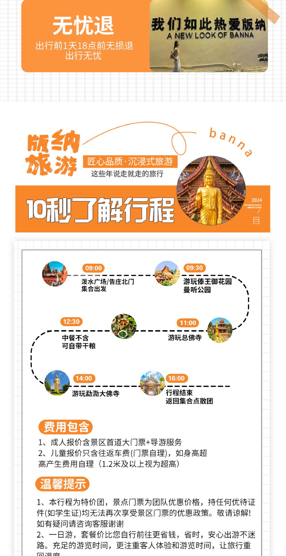 西双版纳勐泐文化旅游区+曼听公园一日游【品味昔目傣王室文化】【[缤纷景点]小团随玩,避开拥堵大巴,湿身之旅,感悟佛法】