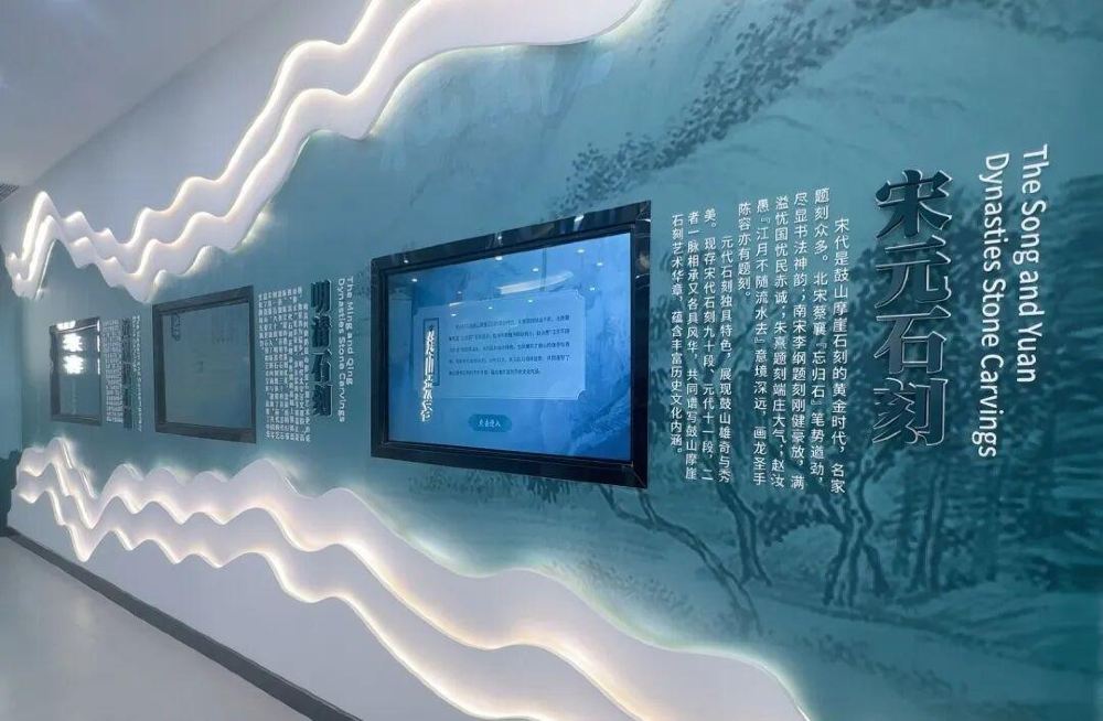 这里像一册被时光翻开的石质诗集,步入展馆,顺着动线缓步而行,开启鼓山千年石刻之旅。迈进展馆,裹着千年墨香的气息扑面而来。序言展墙以 “石因能言尤足珍” 为引,将摩崖石刻的厚重历史娓娓道来。主题艺术浮雕墙立在中央,《鼓山铭》的苍劲字句与 LED 屏里的宣传片相和,让千年前的 “鼓屴崱,峰顶特” 有了生动注脚。转身见竖卷轴造型的发光字,“保护城市历史文化遗产” 的初心与鼓山文脉相融,75 寸触控屏里藏着细碎的时光彩蛋,轻轻一点,便为这场文化之旅拉开序幕。这里是石刻的 “时光长廊”,从北宋到近代的文脉,都记录着八闽大地的文明记忆。156 段石刻串联起千年,三块 LED 触控屏轻轻一点,就能打捞每道刻痕里的时光故事。鼓山崖壁藏着文人 “隔空雅集”:蔡襄题 “忘归石”,百年后赵晋臣续诗应答;朱熹寻友不遇题刻寄思,赵汝愚以 “天风海涛” 相和。陈宝琛筑 “听水斋”,将旷达刻入岩壁。打卡墙上先贤名陈列,游客驻足便成 “同游者”。上世纪老照片里,西方学者仰头观石刻,专注模样藏着对中国文脉的惊叹。一张张影像,记录下石刻艺术的跨文明对话,成了鼓山摩崖走向世界的生动注脚。当数字灵光漫过青石纹理千年前的石刻便在虚拟时空苏醒。这里是 “可触摸的文脉课堂”,让金石技艺从历史里走出来,落在游客掌心。