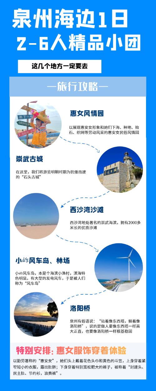 惠女风情园(赠服饰体验)+崇武古城+风车岛+洛阳桥纯玩一日游【2-6人精品拼团,深度了解沿海泉州,漫步沙滩,听听海风】