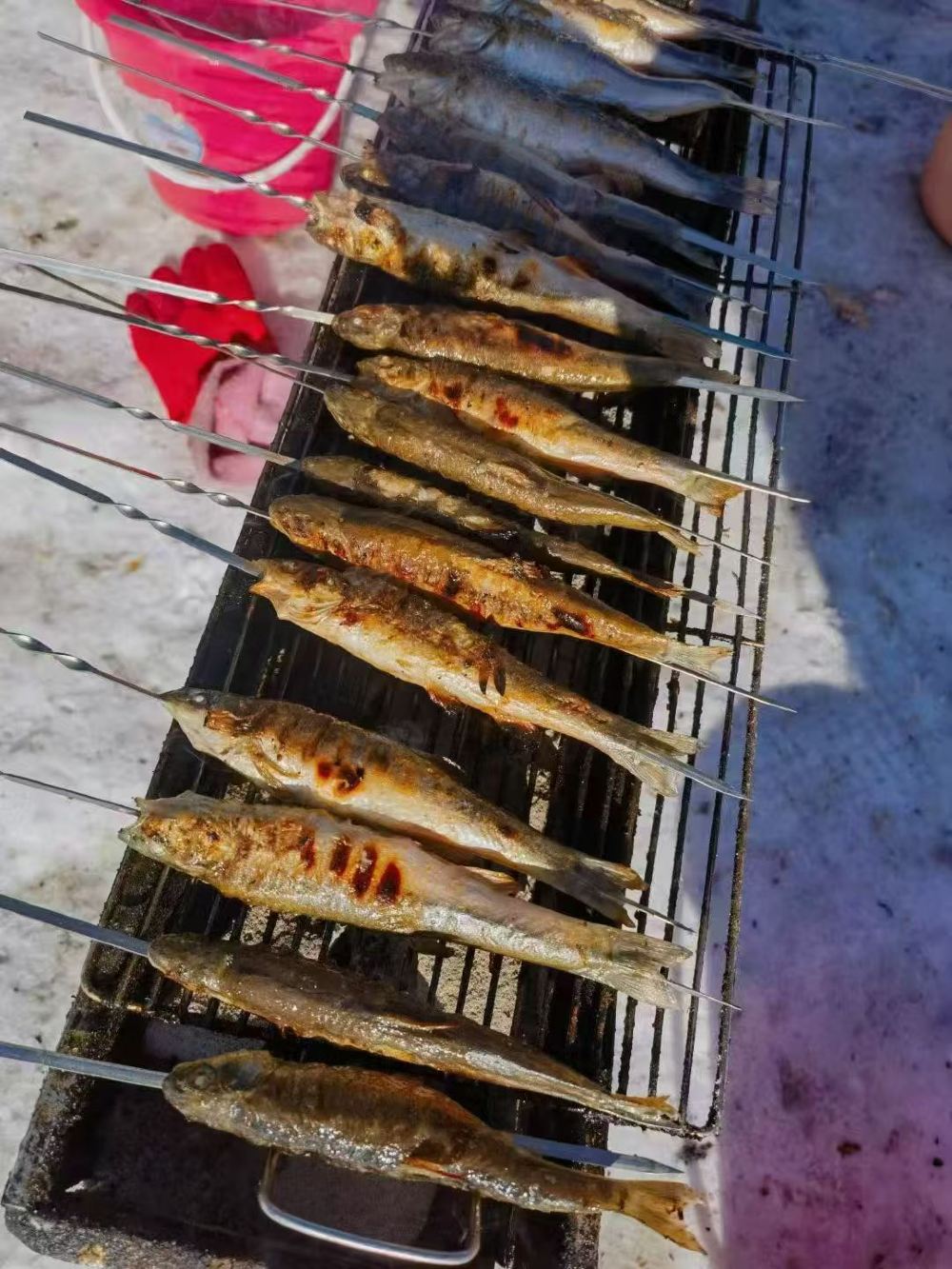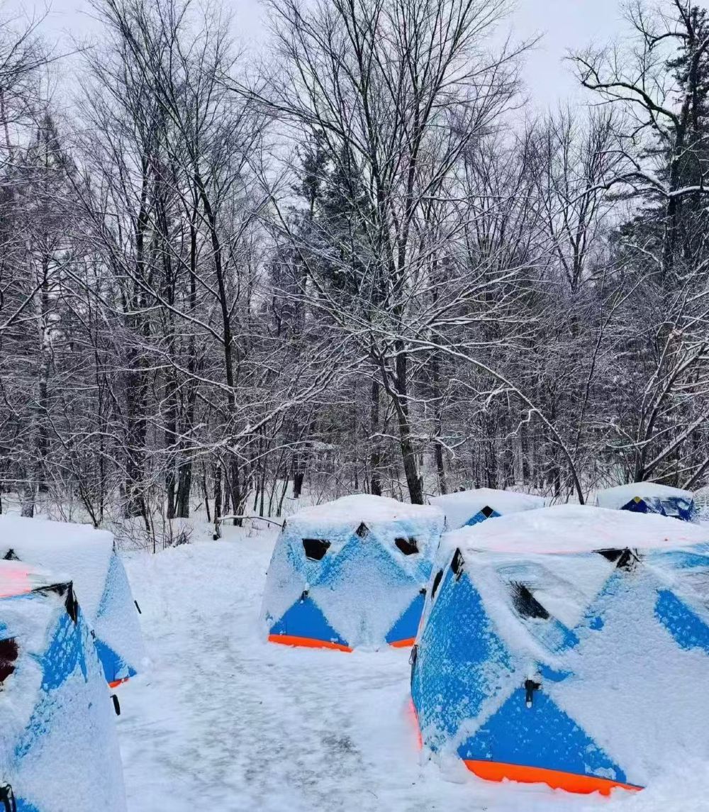 ▲ 鱼咬钩时竿尖有抖动,及时提竿,体验北方特色民俗活动,热闹非凡。