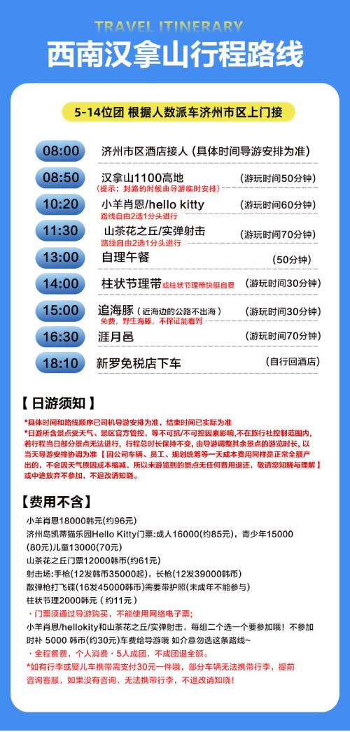 济州岛西南线一日游|汉拿山线+小羊肖恩+山茶花+柱状+追海豚【济州岛本地,解决问题,安心 放心】