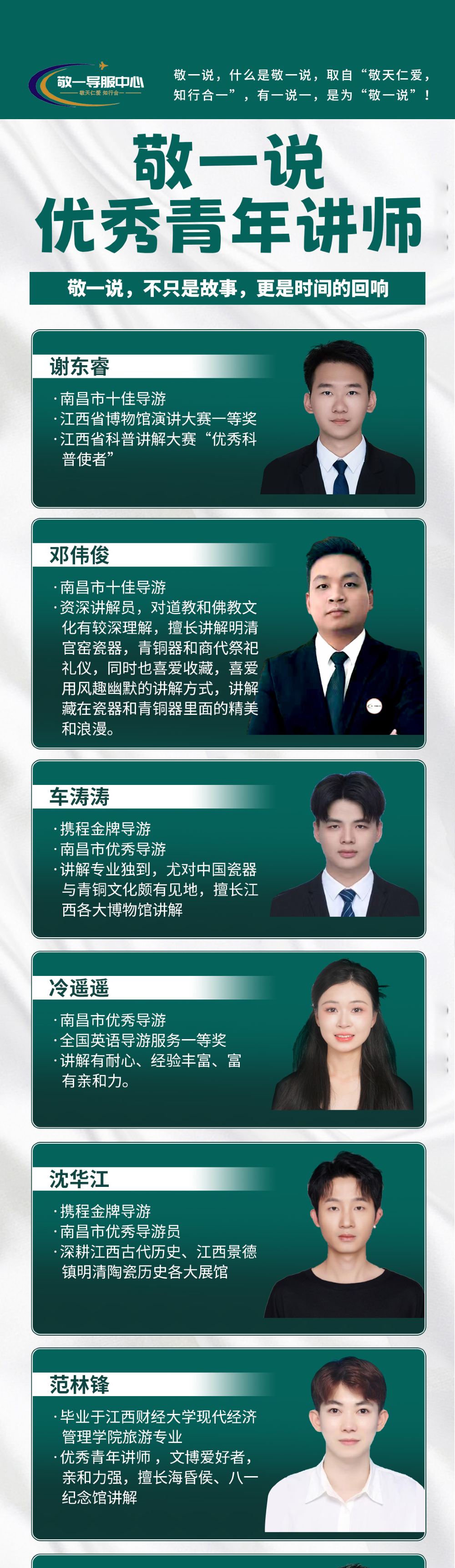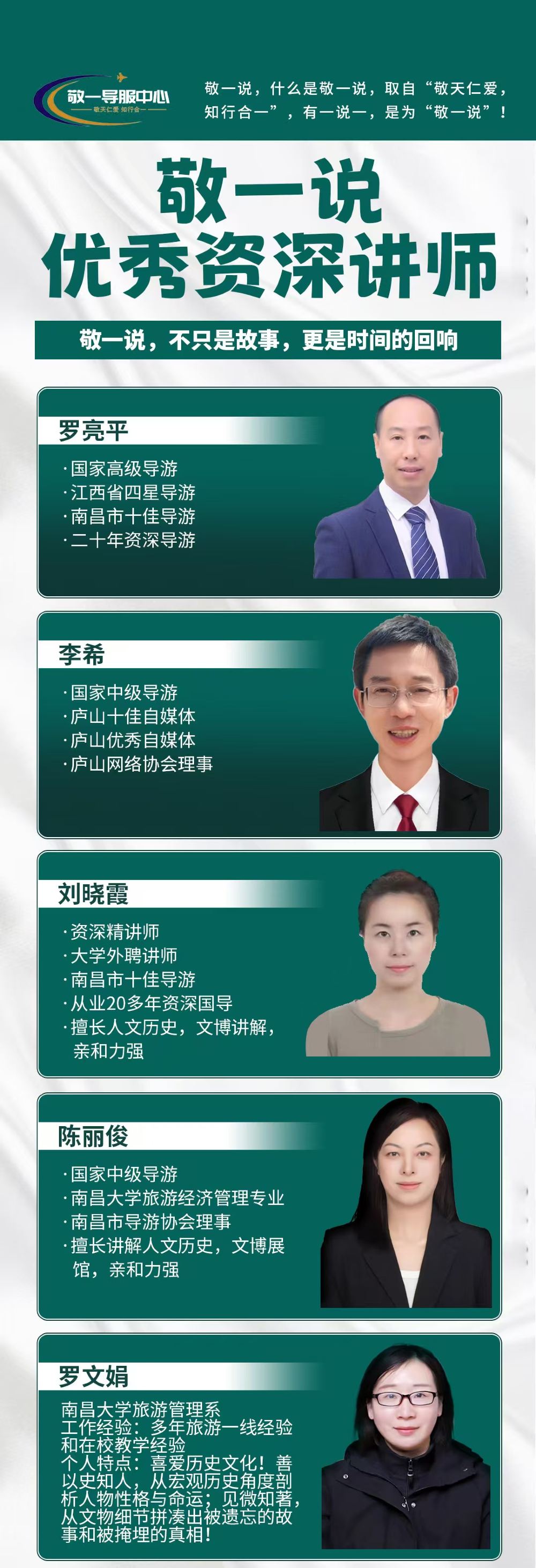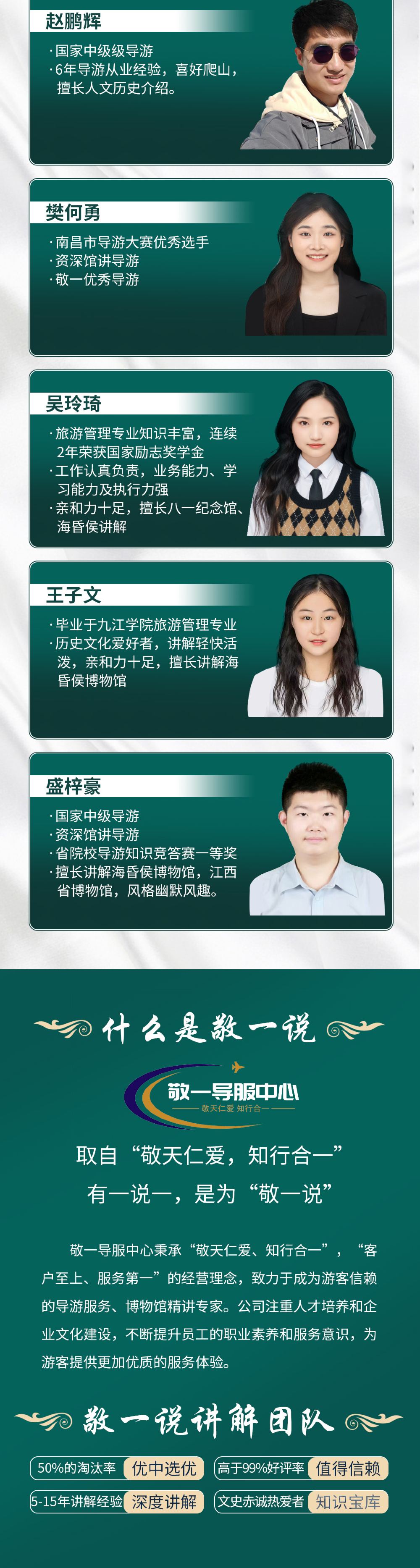 南昌敬壹旅游服务有限公司(敬一导服中心)是一家专注于导游服务的企业,致力于为广大游客、旅行社提供专业、优质的导游服务。