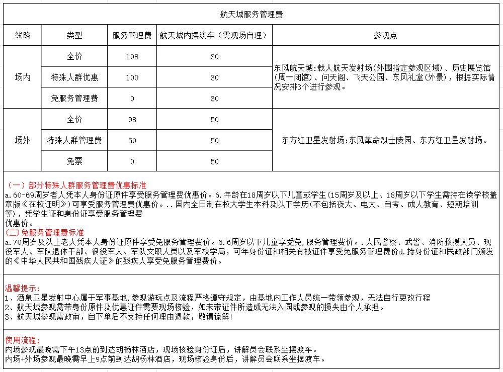 1、因酒泉卫星发射中心为军事基地,需要提前3个工作日以上进行报备,且确定好线路无法进行改动、退款,请知悉。