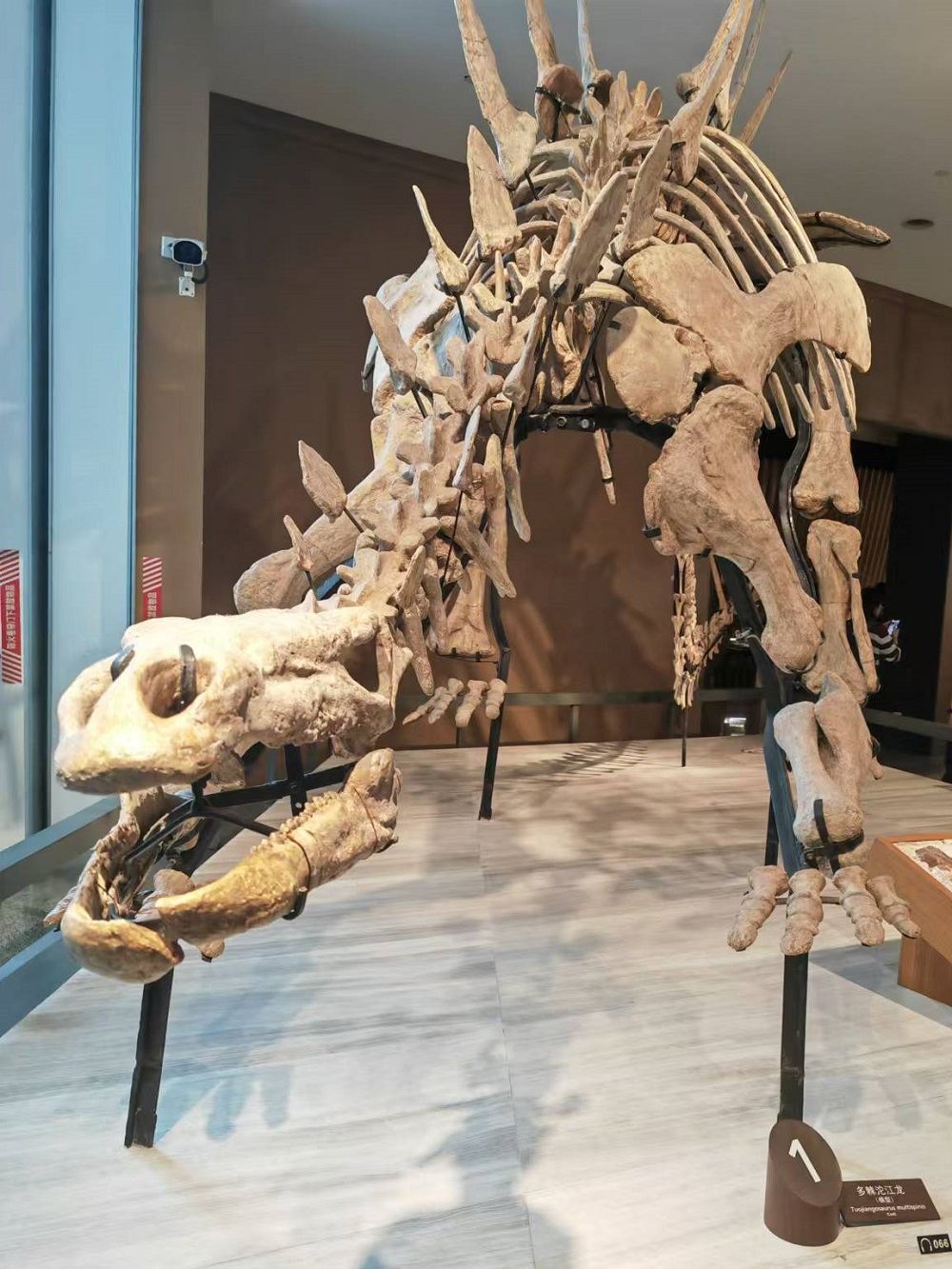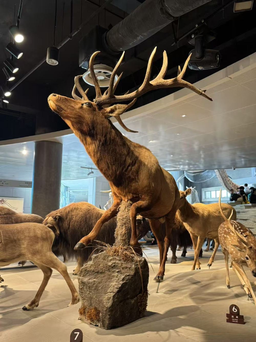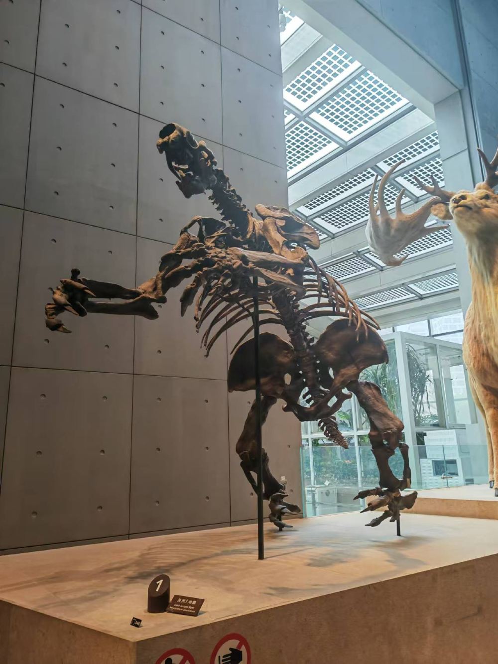 ▲ 镇馆之宝:巨型马门溪龙化石、猛犸象骨架等古生物标本,配合声光技术还原远古生态场景。