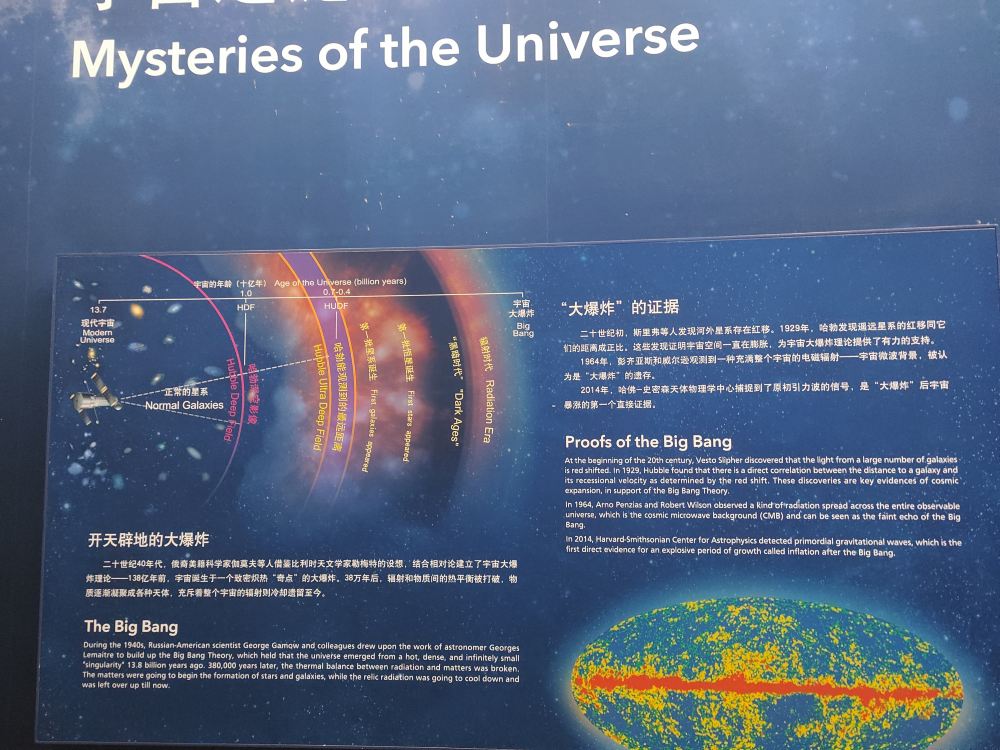 ▲ “天下万物生于有,有生于无。”宇宙起源于约138亿年前的“大爆炸”。随后,林林总总的天体相继形成,46亿年前我们的家园——地球诞生了。 宇宙从何而来?宇宙有多大?宇宙的未来是什么?生命的种子来自何方?最早的生命何时出现?地外生命是否存在?人类锲而不舍地追寻着宇宙和生命起源的线索,不断提出各种学说与假说,有的被证实,有的则被推翻。 天地有大美而不言,万物有成理而不说,“起源之谜”展区带领我们循着科学家们的足迹,一起去寻找所有的答案。