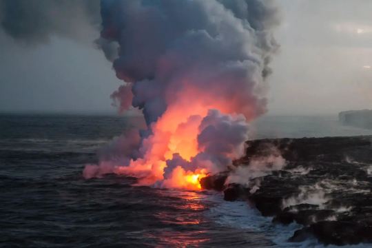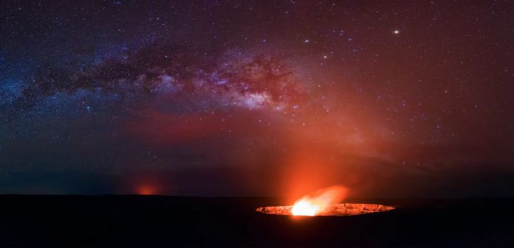 ▲ 基拉韦厄峰是世界上较活跃的活火山之一,从1983年至今从未停止喷发。巨大的火山口仿佛一口大锅,通红炙热的岩浆在火山湖中流淌,仿佛是大地的伤口结痂处再次裂开,流出一股股鲜血,称得上是大自然中的奇观。