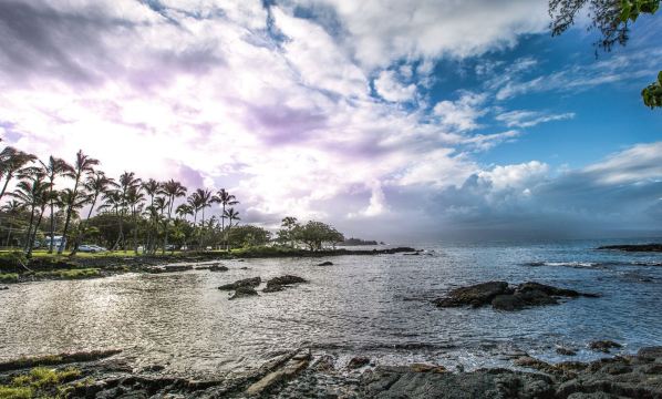 ▲ 游客初到这里会感觉黑漆漆的一片,乍一眼望去,连海水也是黑的,其实不然,因为海滩是黑色的,黑沙衬托的海水也黑了。但仔细看,海水还是蓝色的,沙上的椰树和一些绿色植物同这片黑色形成了鲜明的对比。