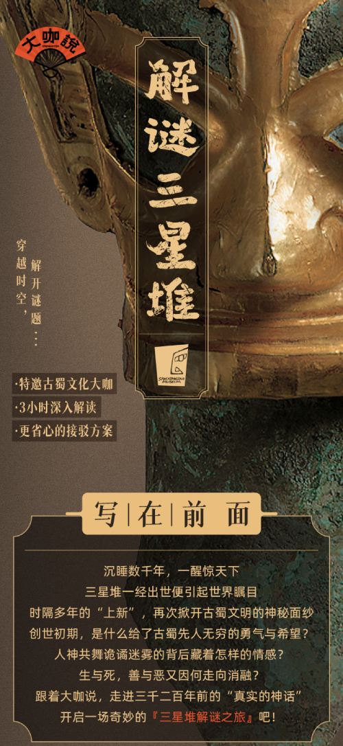 “大咖说”四川三星堆博物馆半日游多场次精讲【可选含车/含票】【[超全覆盖]新馆三大展厅超长3小时深度大咖精讲,串联古蜀文明,横向对比中华和世界历史,涨知识】