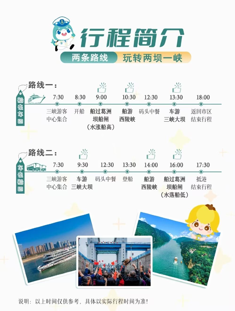 2、受天气因素及船闸时间影响,出发时间可能提前或推迟,请以导游通知为准,如有造成不便,敬请谅解!