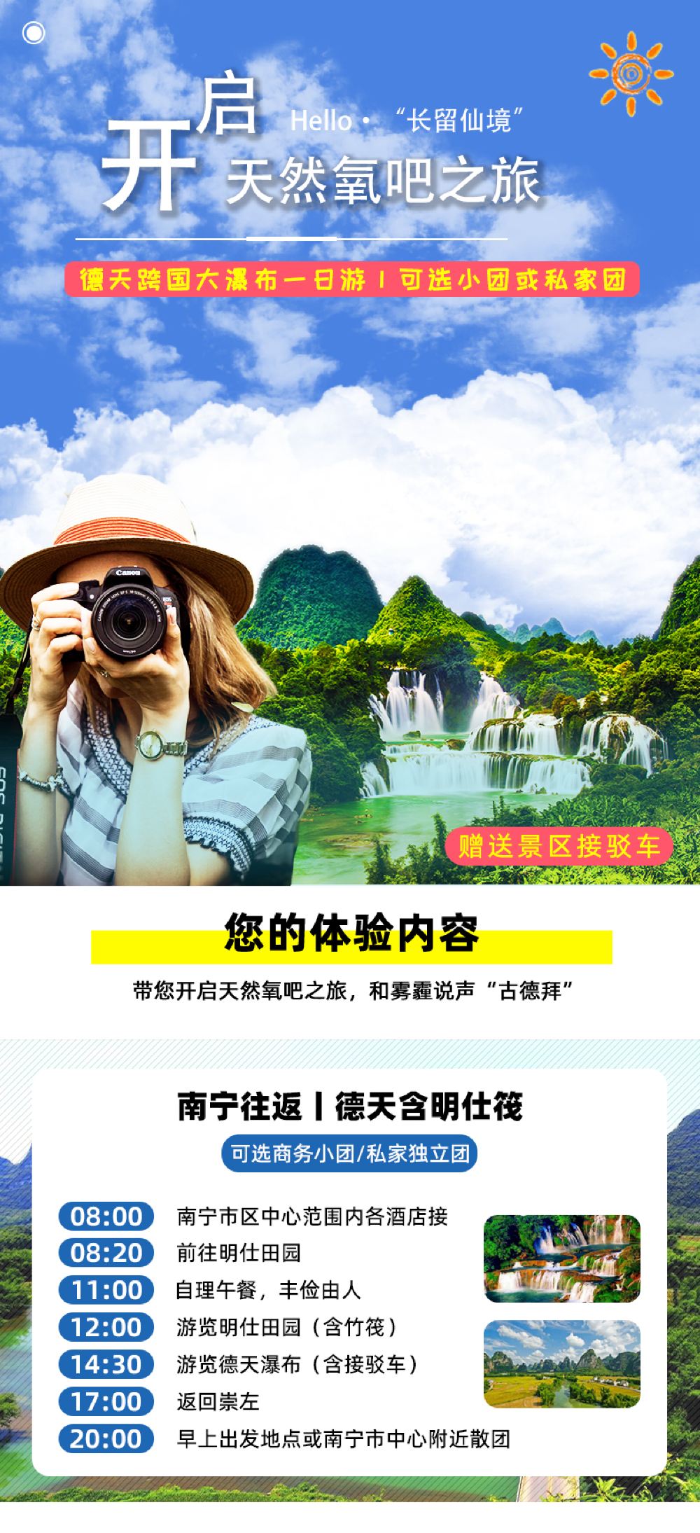 1、【私家独立团】套餐提供上门接送服务:南宁市区范围:东至琅东车站,西至西乡塘车站,南至江南车站,北至安吉车站。如超出指定区域不提供上门接服务,如超范围请按司机实际通知安排就近的集合地点候车,部分酒店不能直接到门口接上车地点以司机通知为准。
