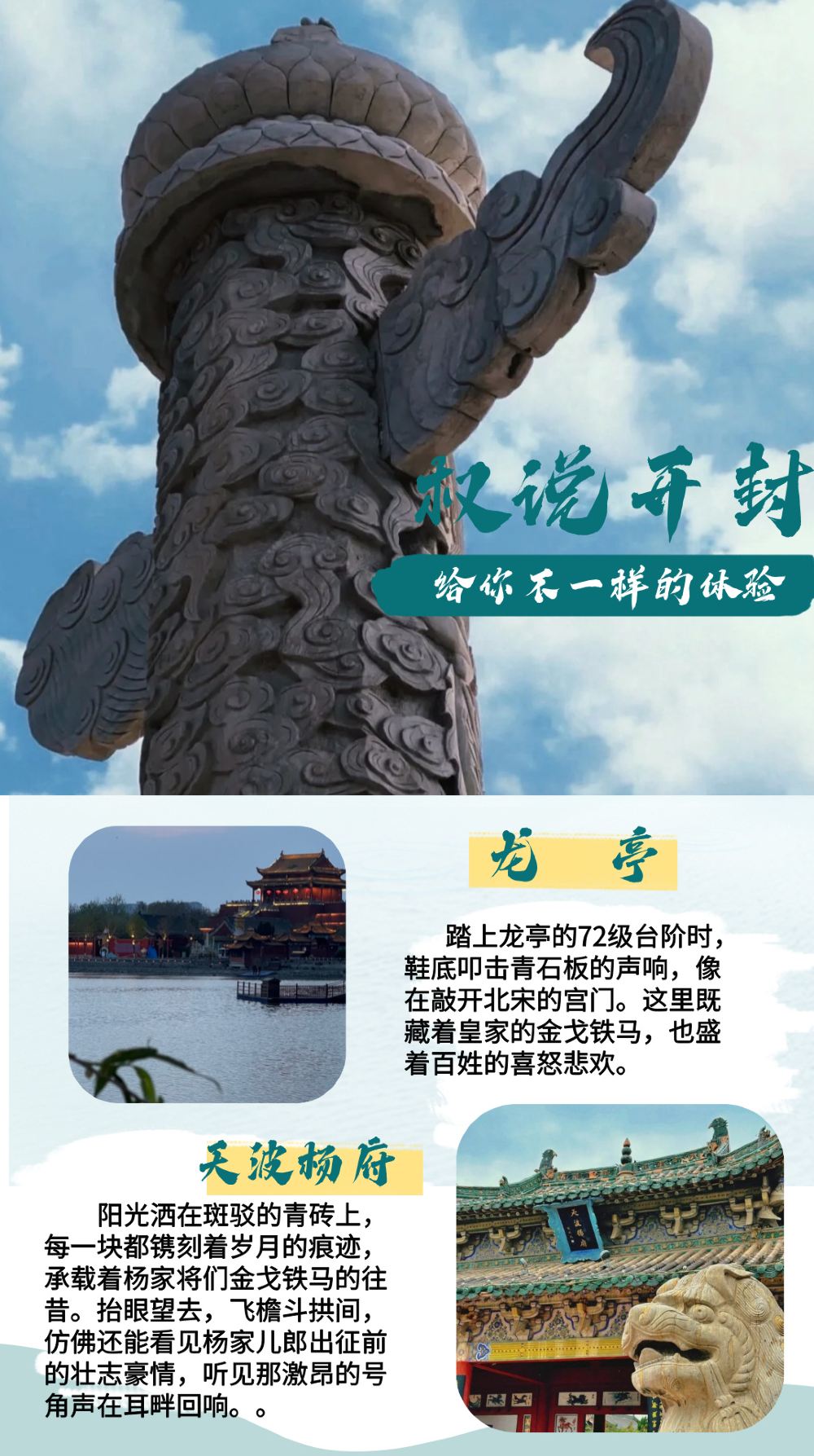 ▲ 别错过开封震撼的“历史对话”:在龙亭大殿俯瞰潘杨二湖,听“清浊分忠奸”的传说;到天波杨府孝严祠拜谒杨家将,看佘太君“百岁挂帅”的群雕。联票60元穿越千年,从金銮殿到将军府,沉浸式感受北宋的“双面镜像”。