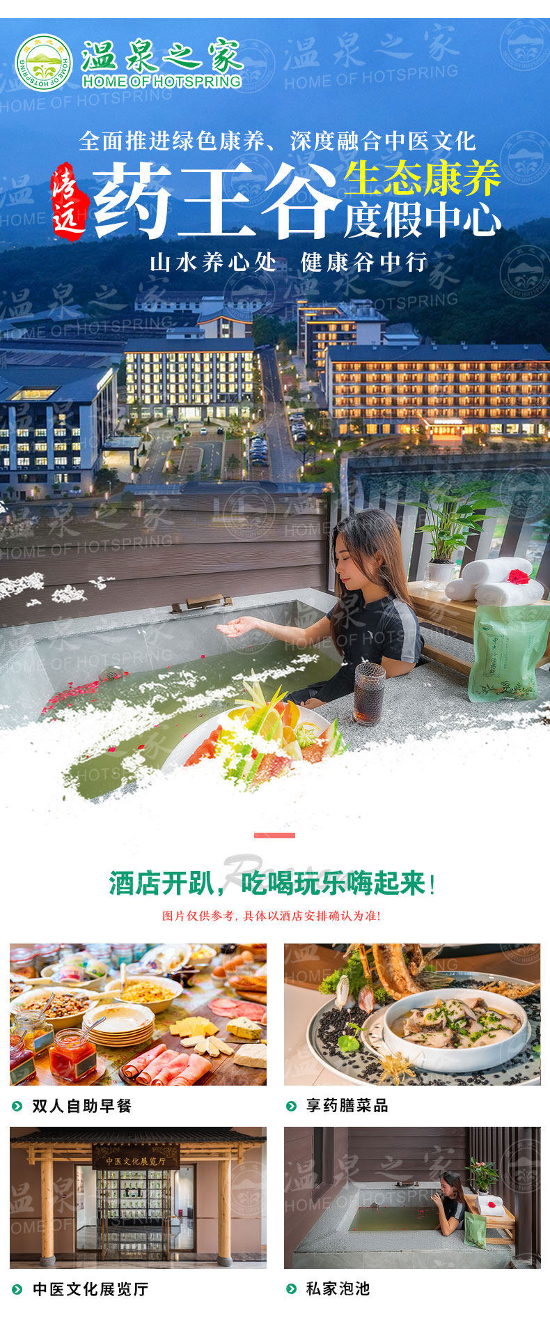 清远佛冈药王谷汤泉康养酒店·两大两小养生营养自助早餐+阳光生态农场赠送每间房2斤指定蔬苹