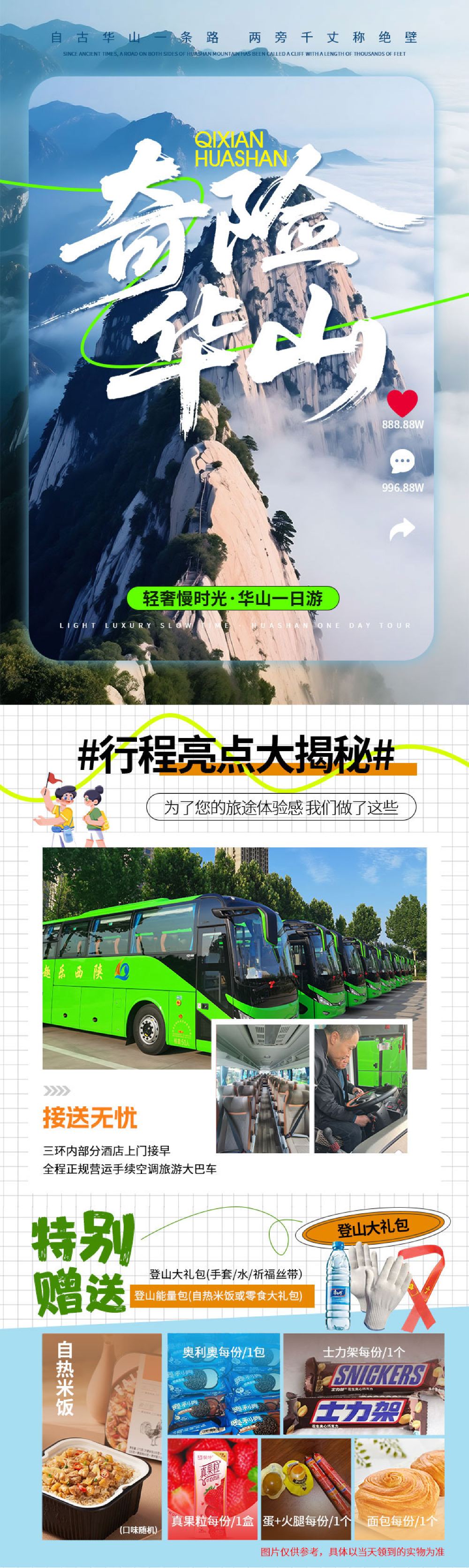 陕西华山一日游【三环内接早/赠自热米饭/登山手套】【[无忧出行]三环内酒店上门接,省去寻路苦恼。早到早上多玩一小时】